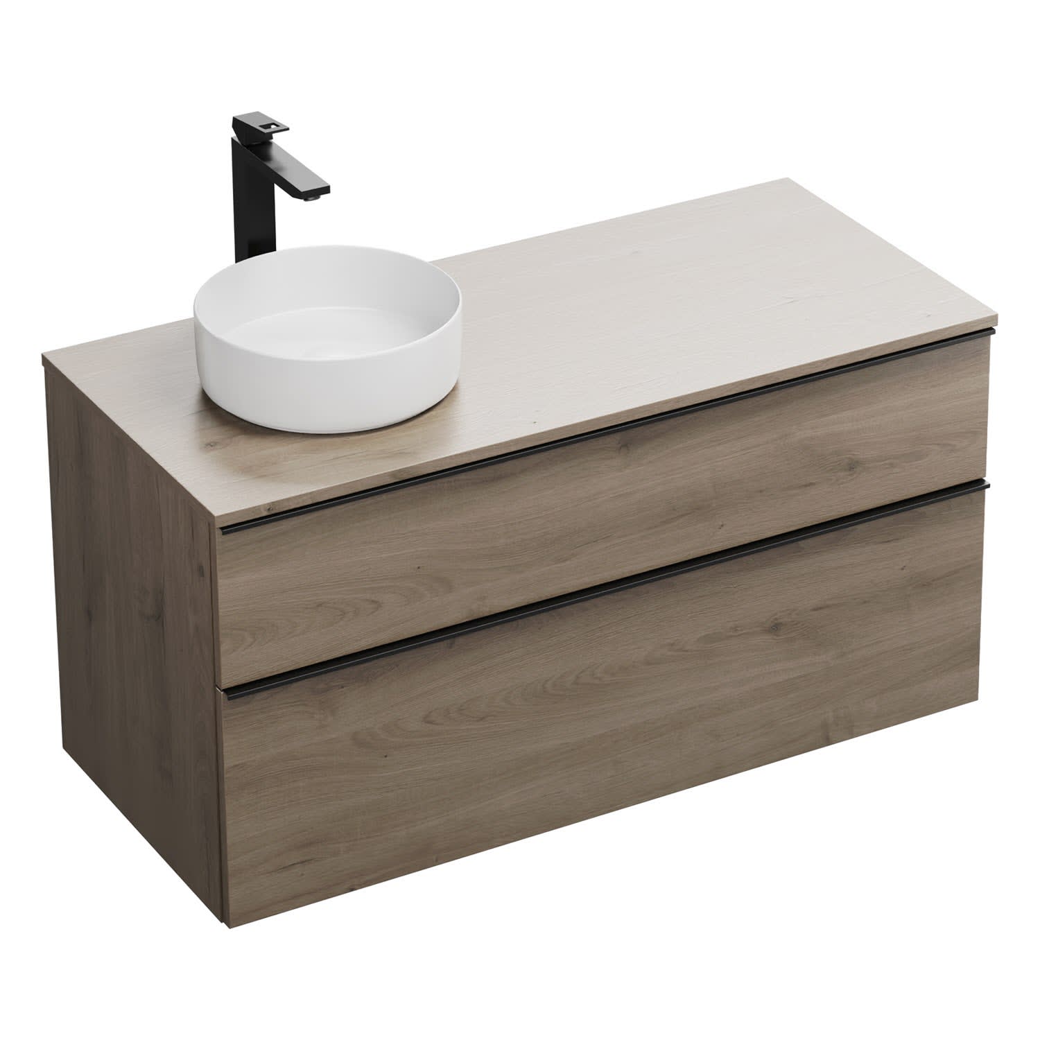 burgbad Eqio Waschtischkombination mit Keramik-Aufsatzwaschtisch 120 cm, links, mit Griffleiste G0252