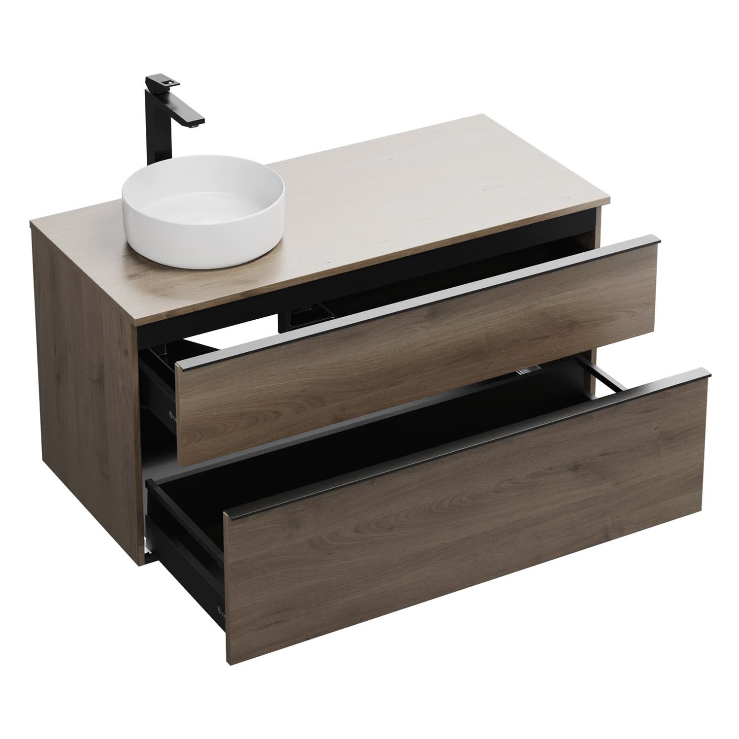 - 1 Schublade oben, 35 cm tief, mit Siphonausschnitt und Inneneinteilung
