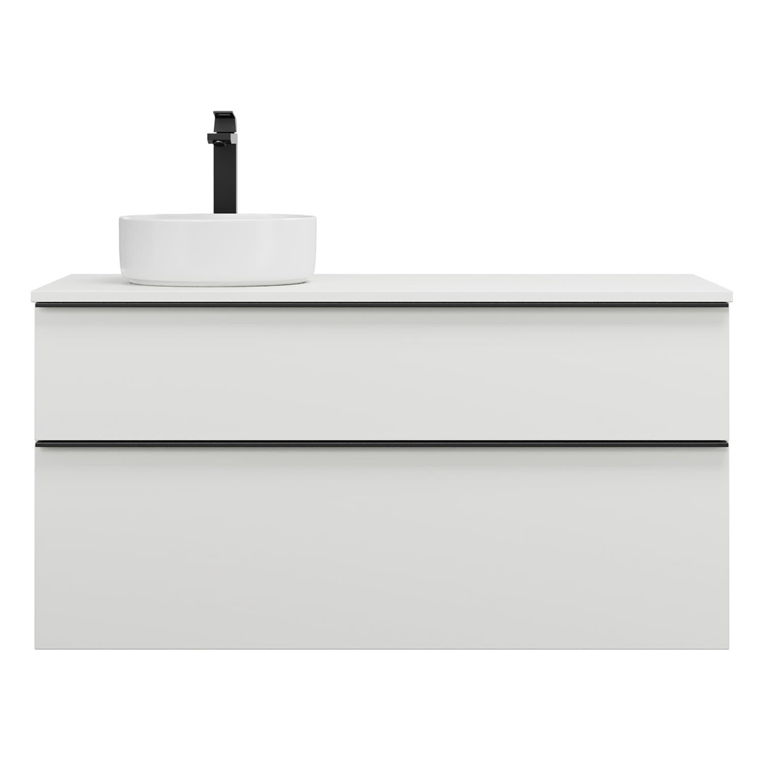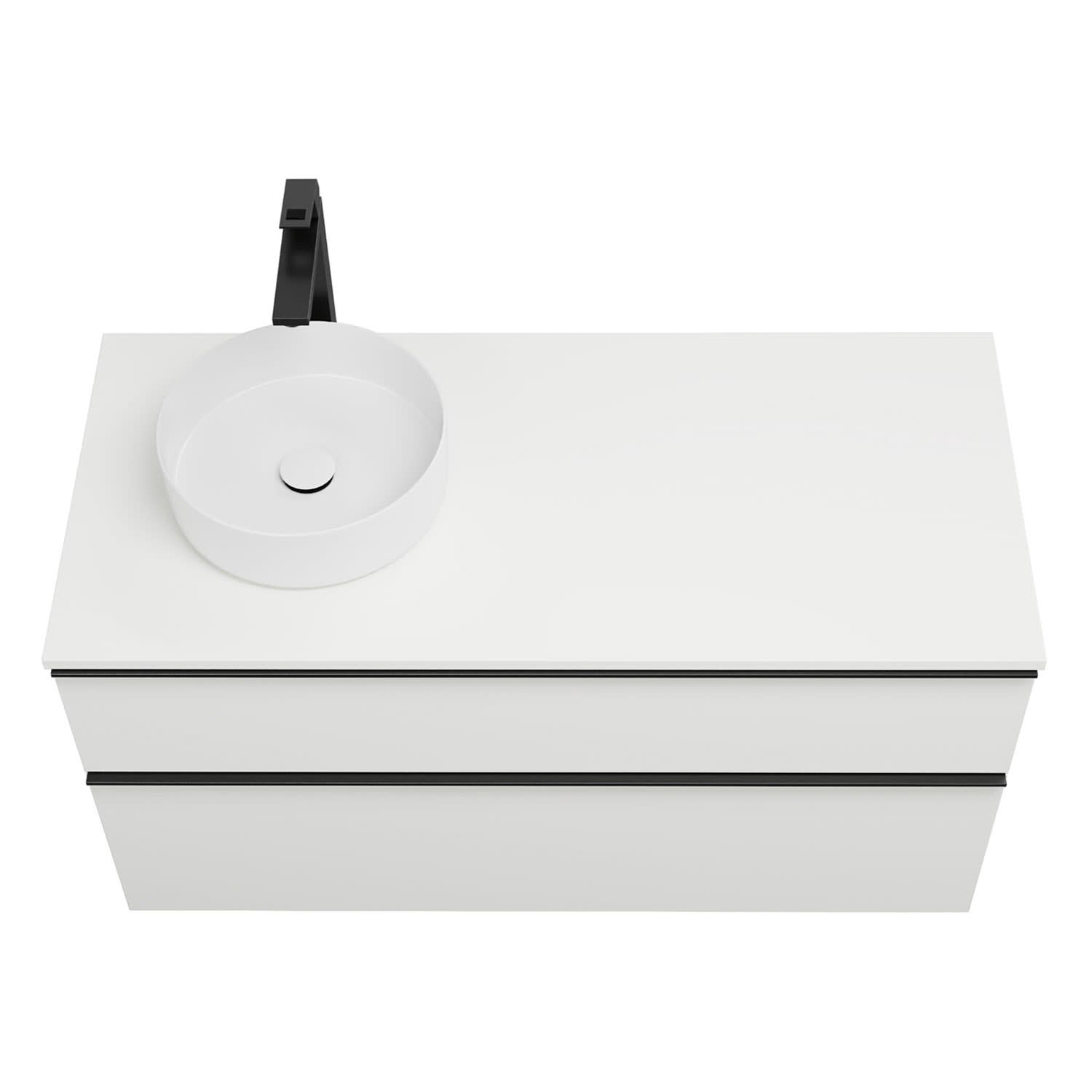 - 1 Schublade oben, 35 cm tief, mit Siphonausschnitt und Inneneinteilung
