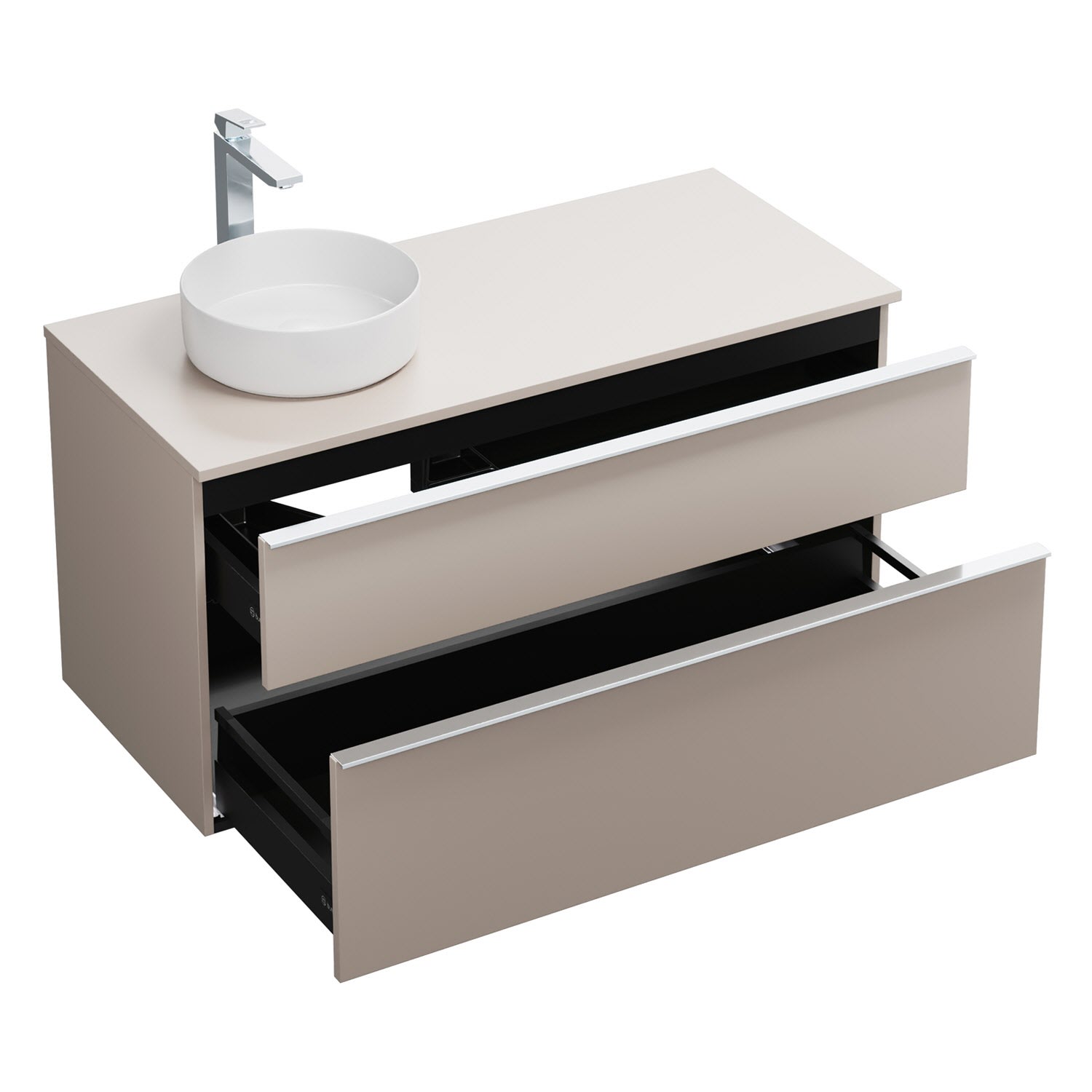 - 1 Schublade oben, 35 cm tief, mit Siphonausschnitt und Inneneinteilung