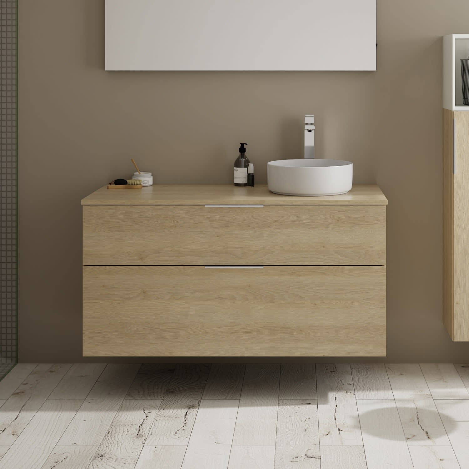 burgbad Eqio Waschtischkombination mit Keramik-Aufsatzwaschtisch 120 cm, rechts, mit Griff G0146