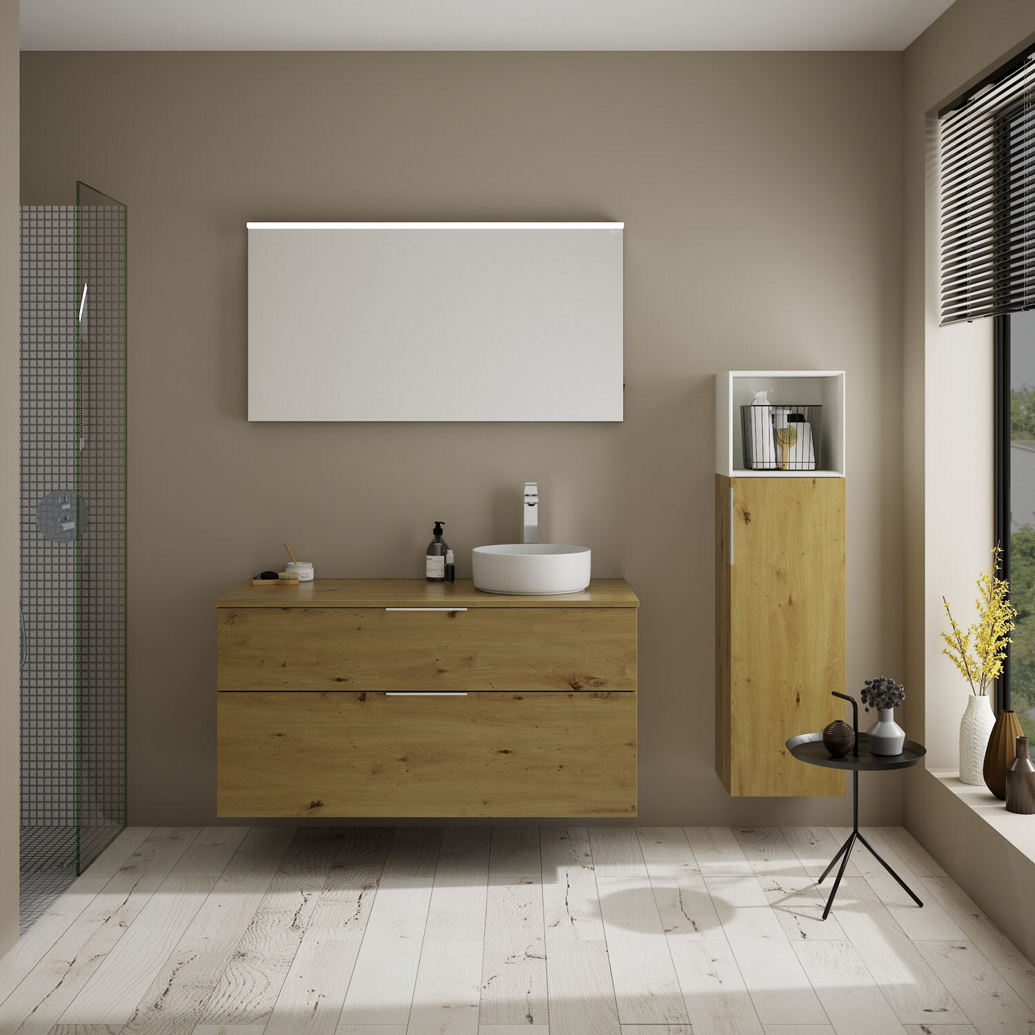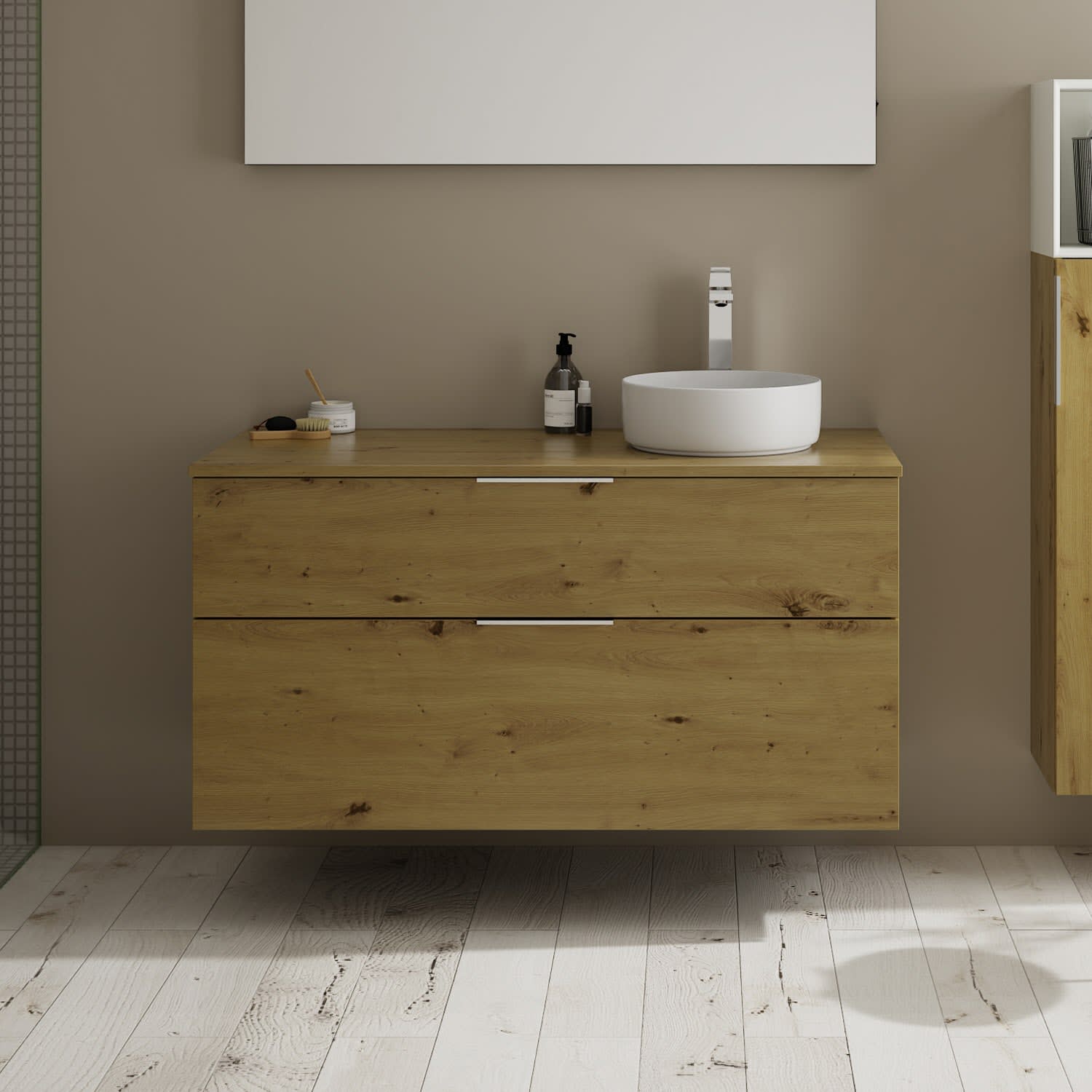 burgbad Eqio Waschtischkombination mit Keramik-Aufsatzwaschtisch 120 cm, rechts, mit Griff G0146