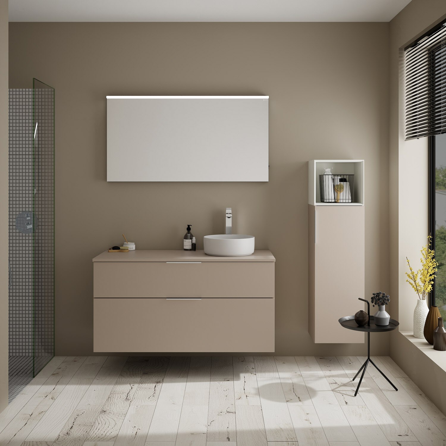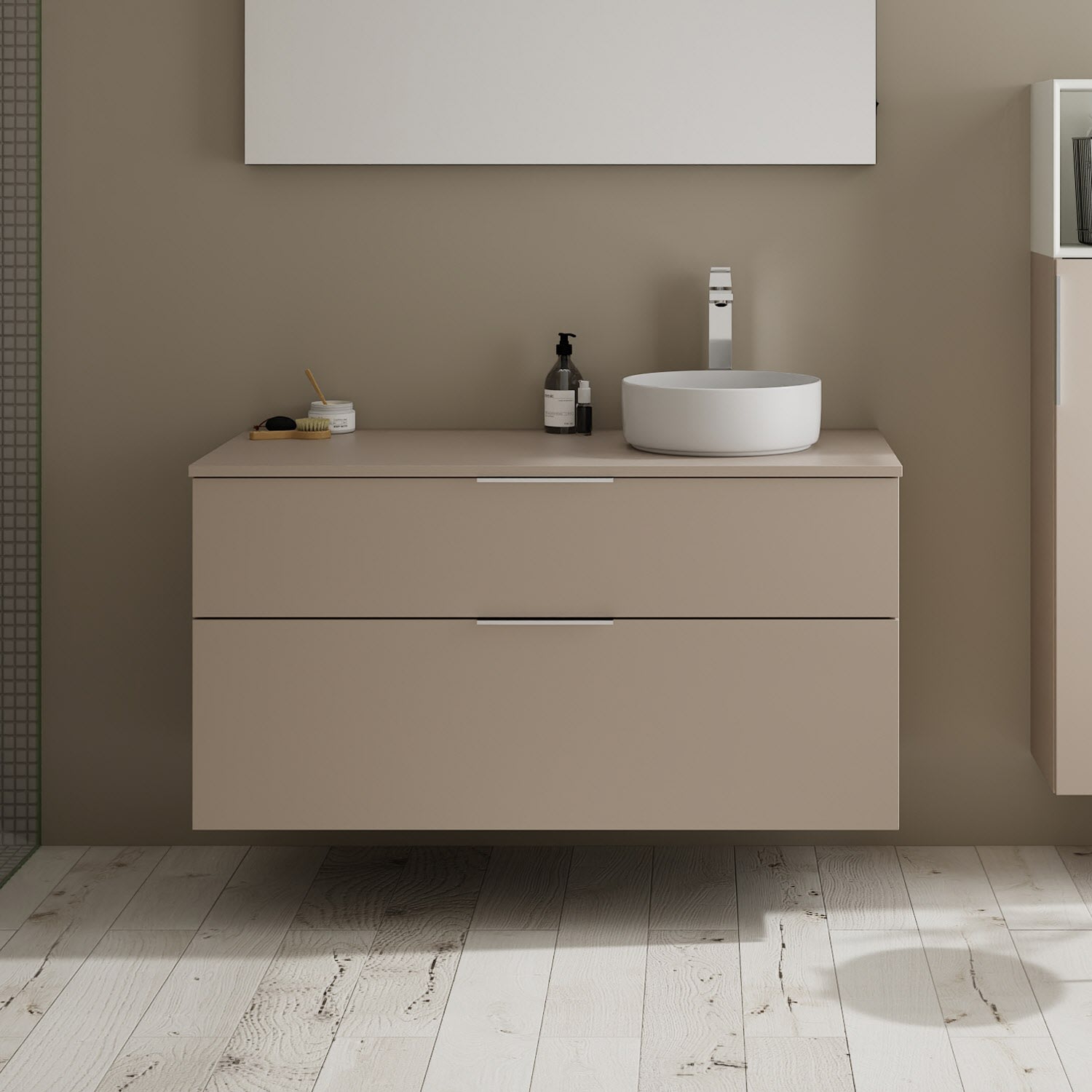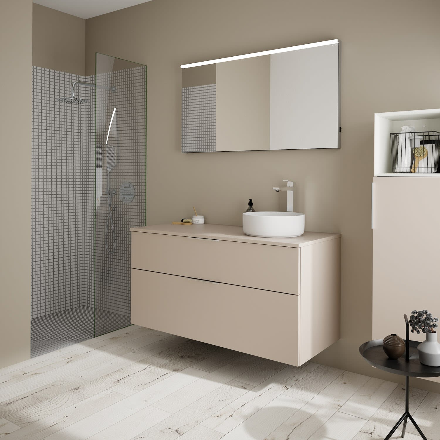 burgbad Eqio Waschtischkombination mit Keramik-Aufsatzwaschtisch 120 cm, rechts, mit Griff G0146