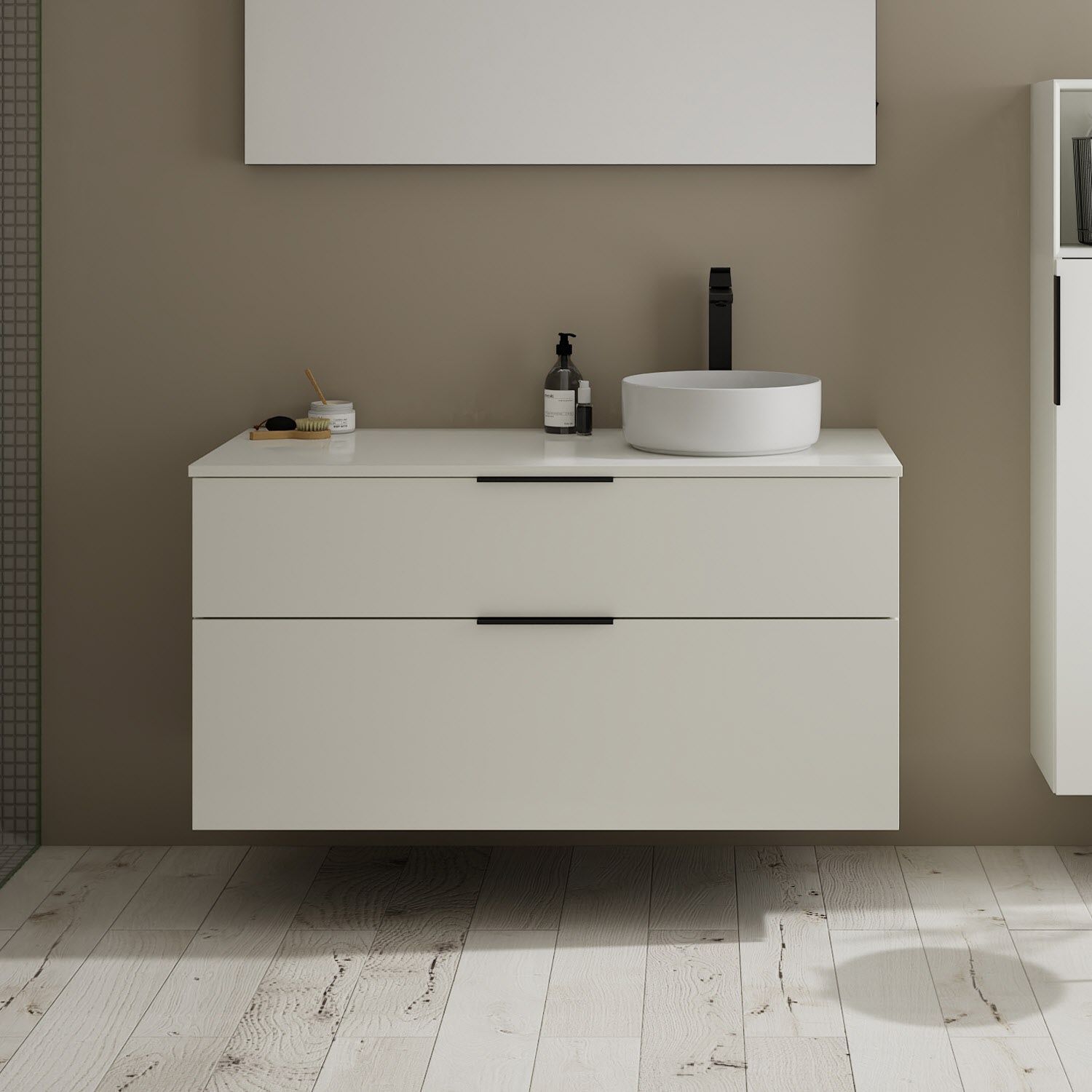 burgbad Eqio Waschtischkombination mit Keramik-Aufsatzwaschtisch 120 cm, rechts, mit Griff G0200