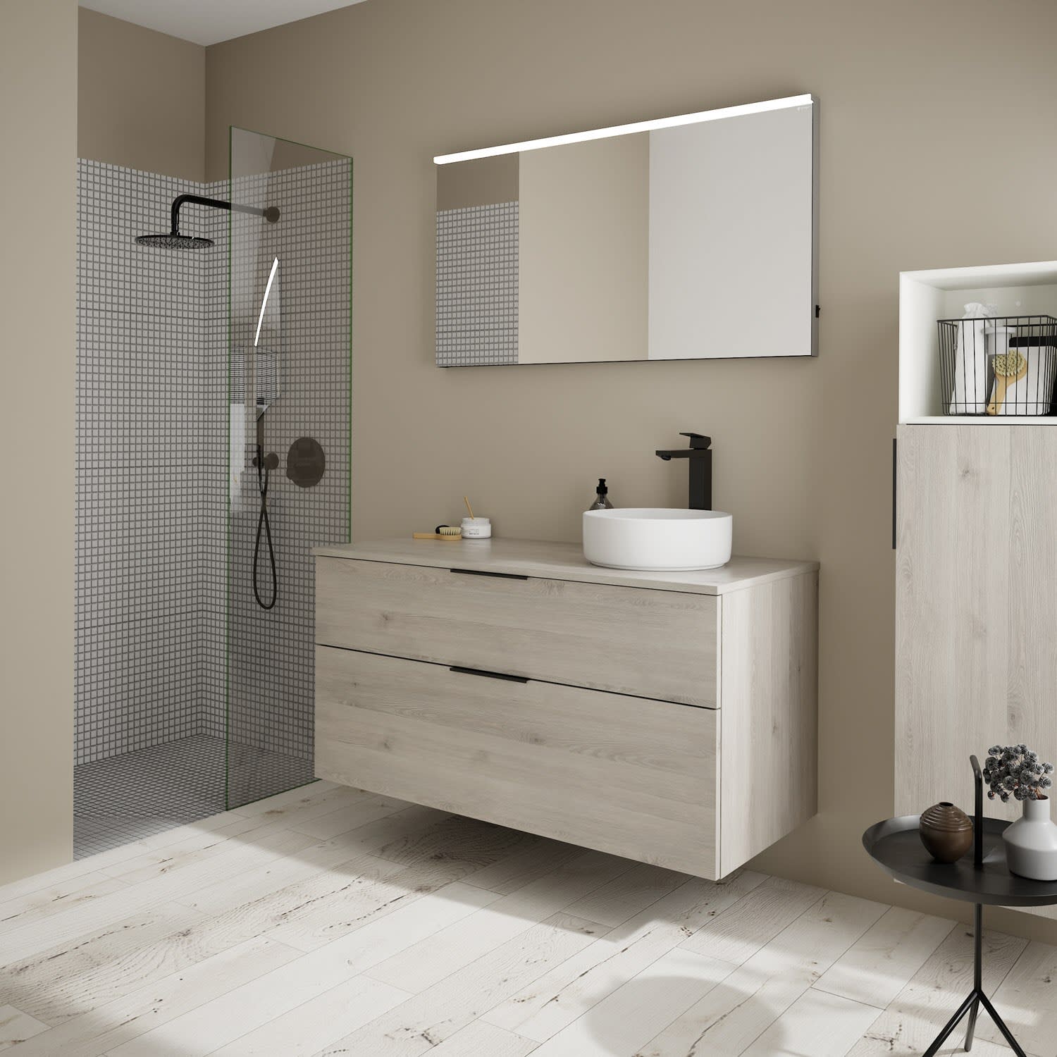 burgbad Eqio Waschtischkombination mit Keramik-Aufsatzwaschtisch 120 cm, rechts, mit Griff G0200