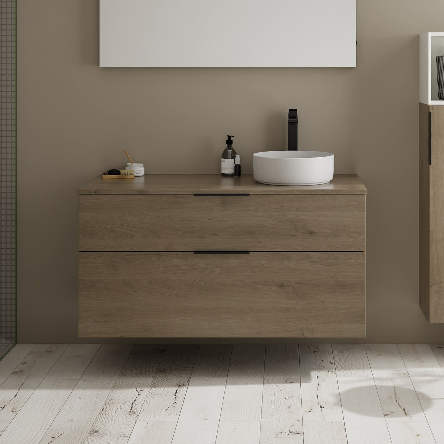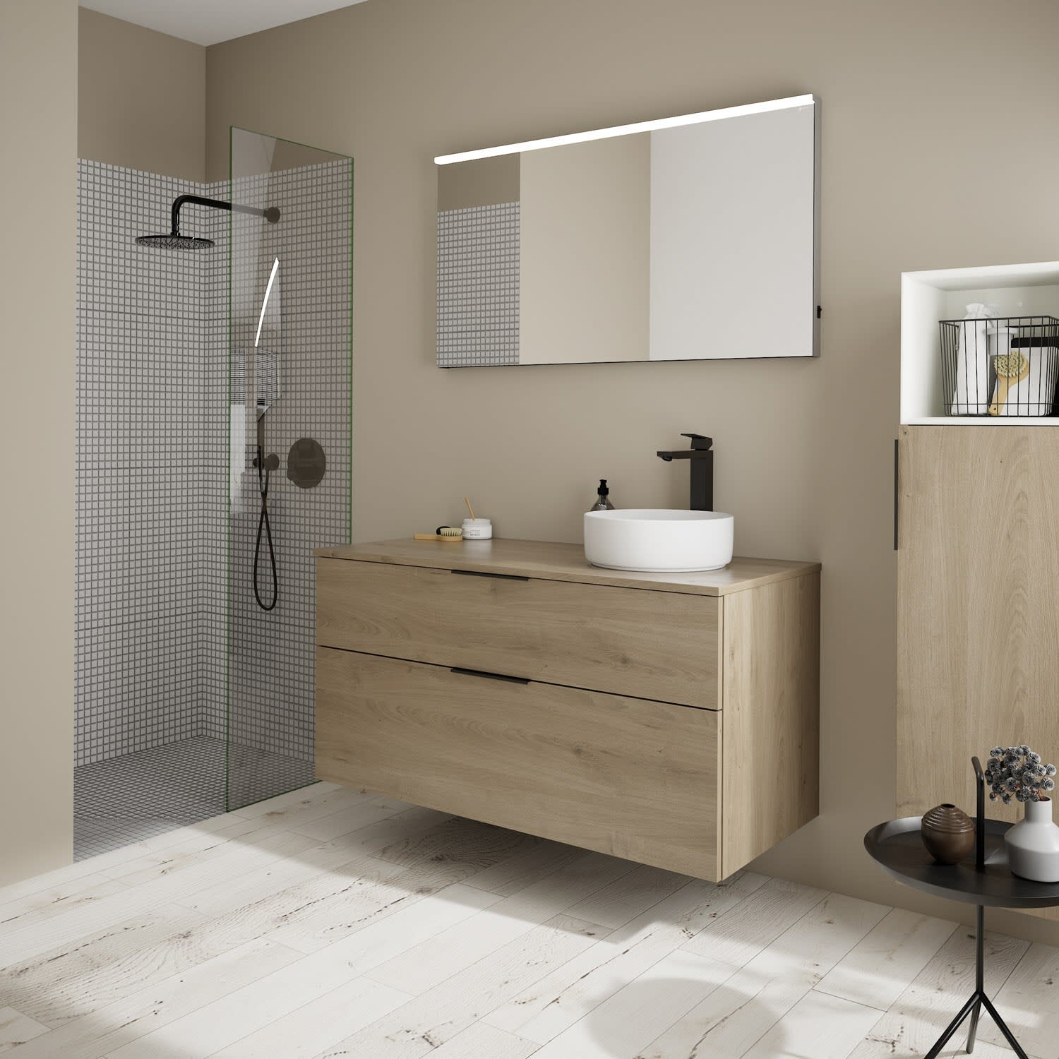 burgbad Eqio Waschtischkombination mit Keramik-Aufsatzwaschtisch 120 cm, rechts, mit Griff G0200