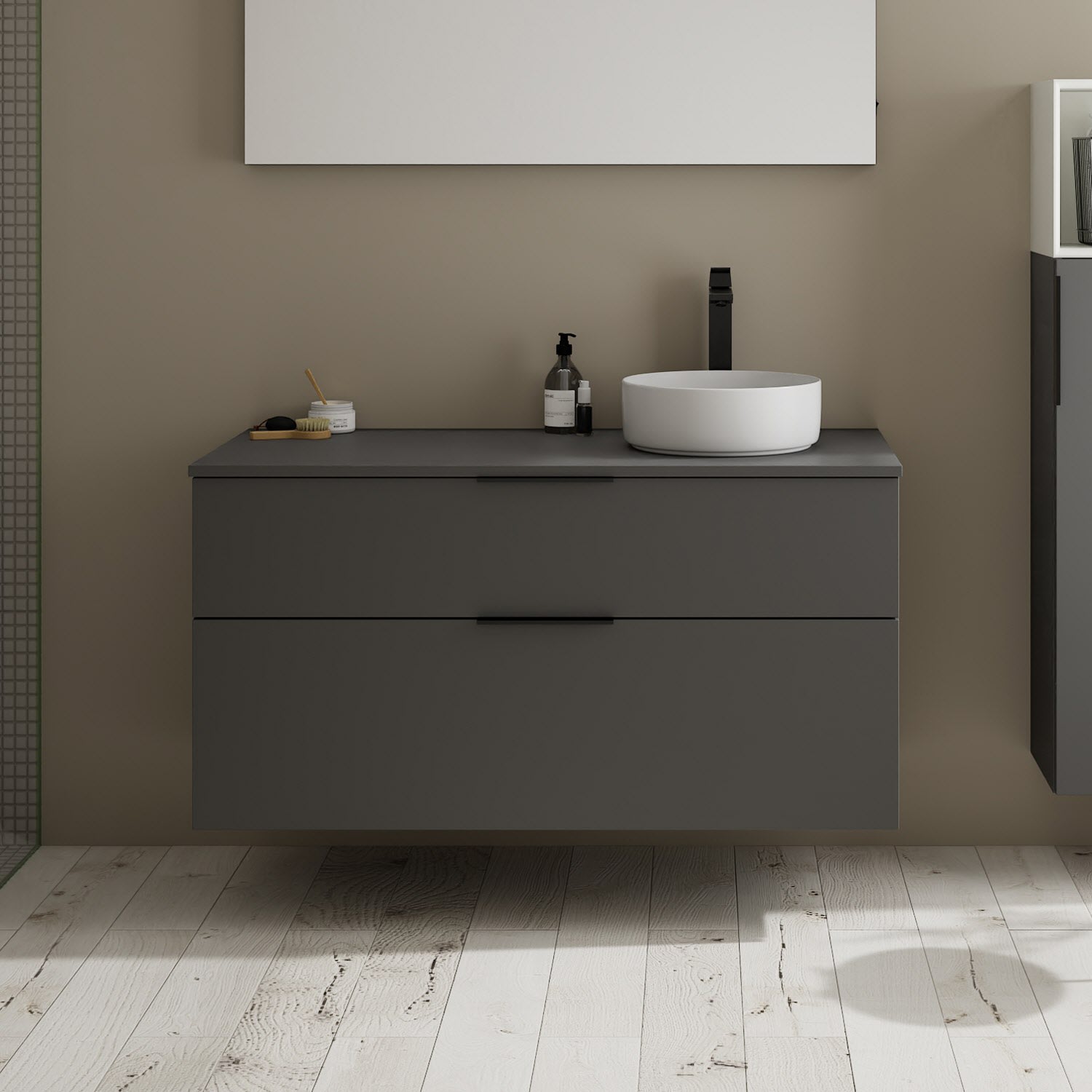 - Boden/Rückwand: Anthrazitgrau