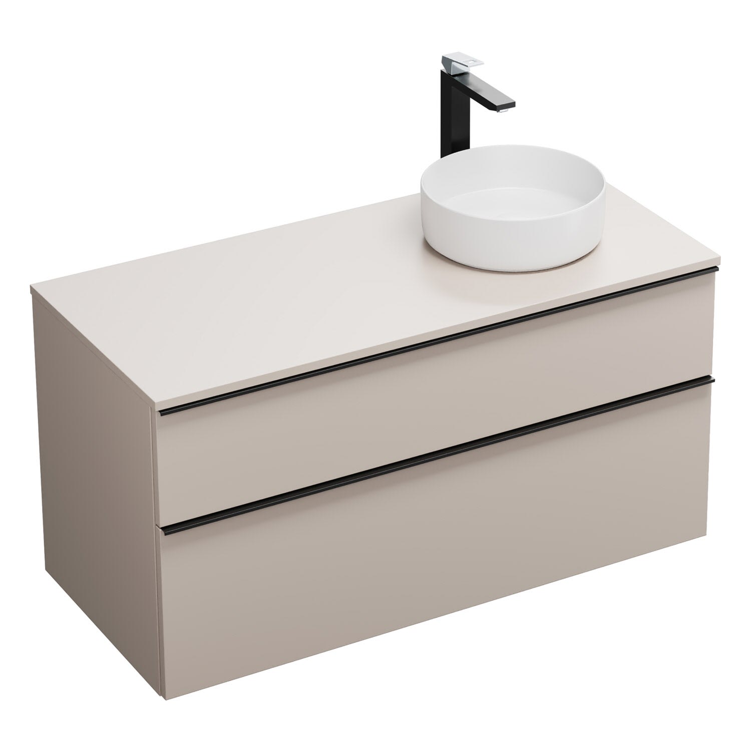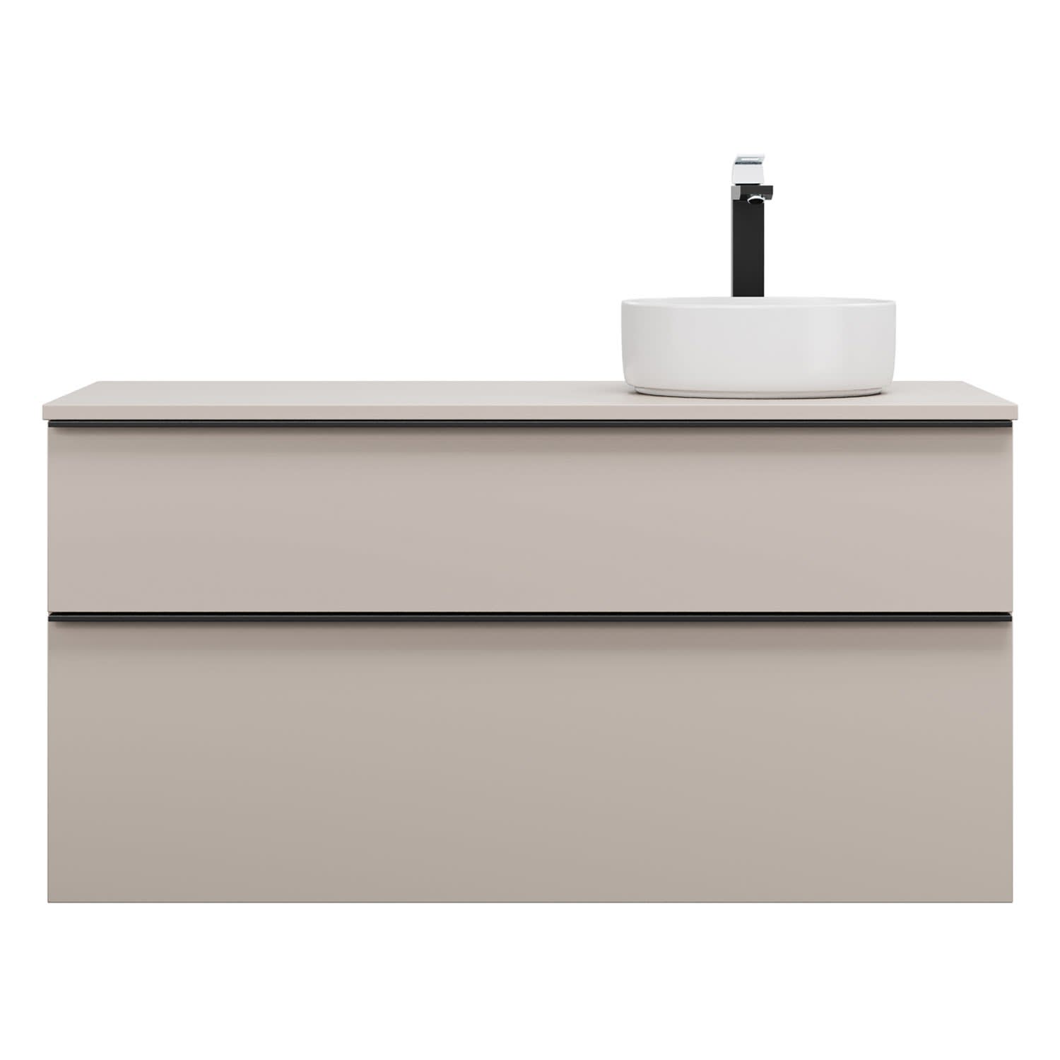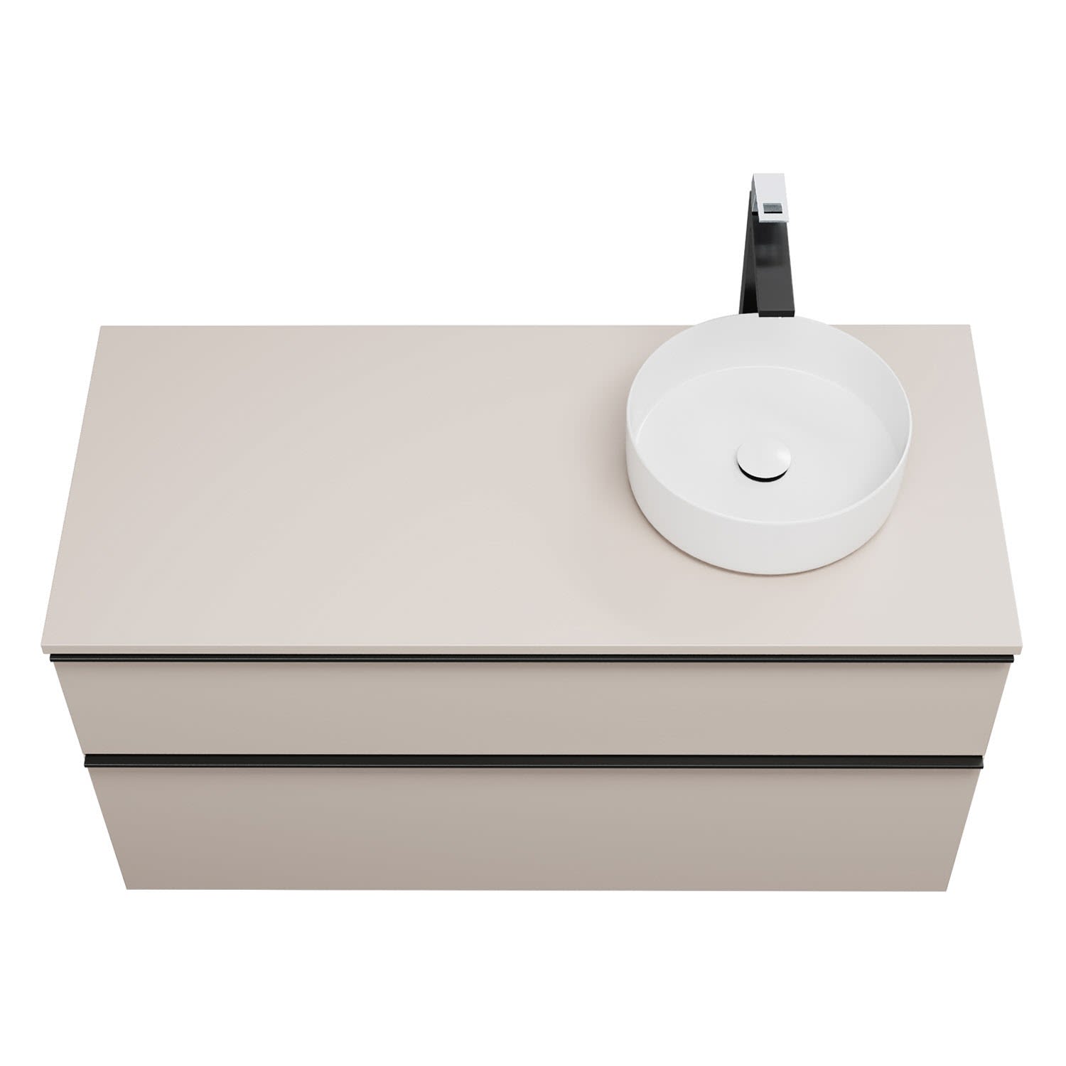 - 1 Schublade oben, 35 cm tief, mit Siphonausschnitt und Inneneinteilung