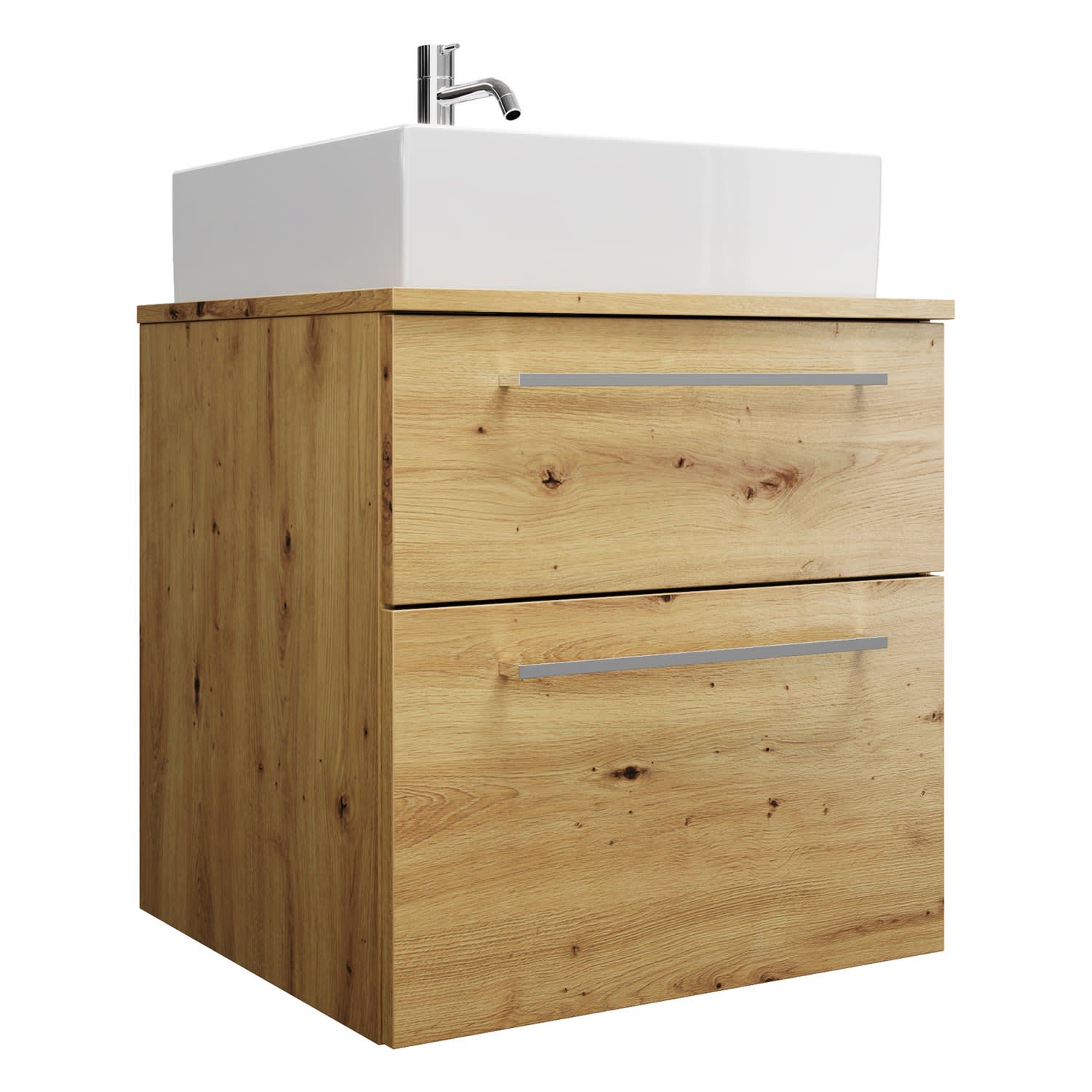 burgbad Eqio Waschtischkombination mit Keramik-Aufsatzwaschtisch 60 cm, mit Stangengriff P95