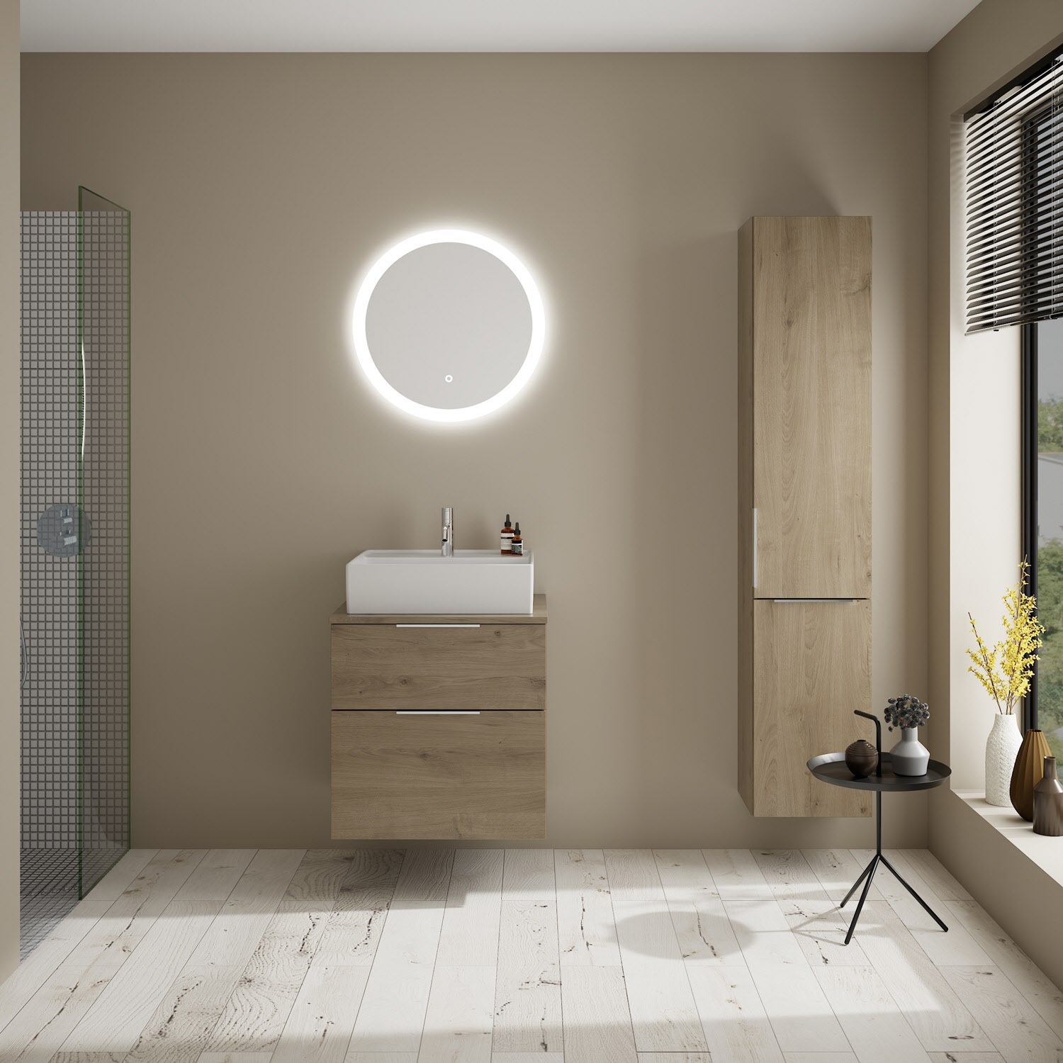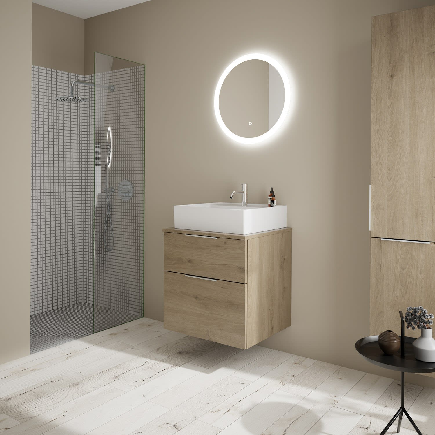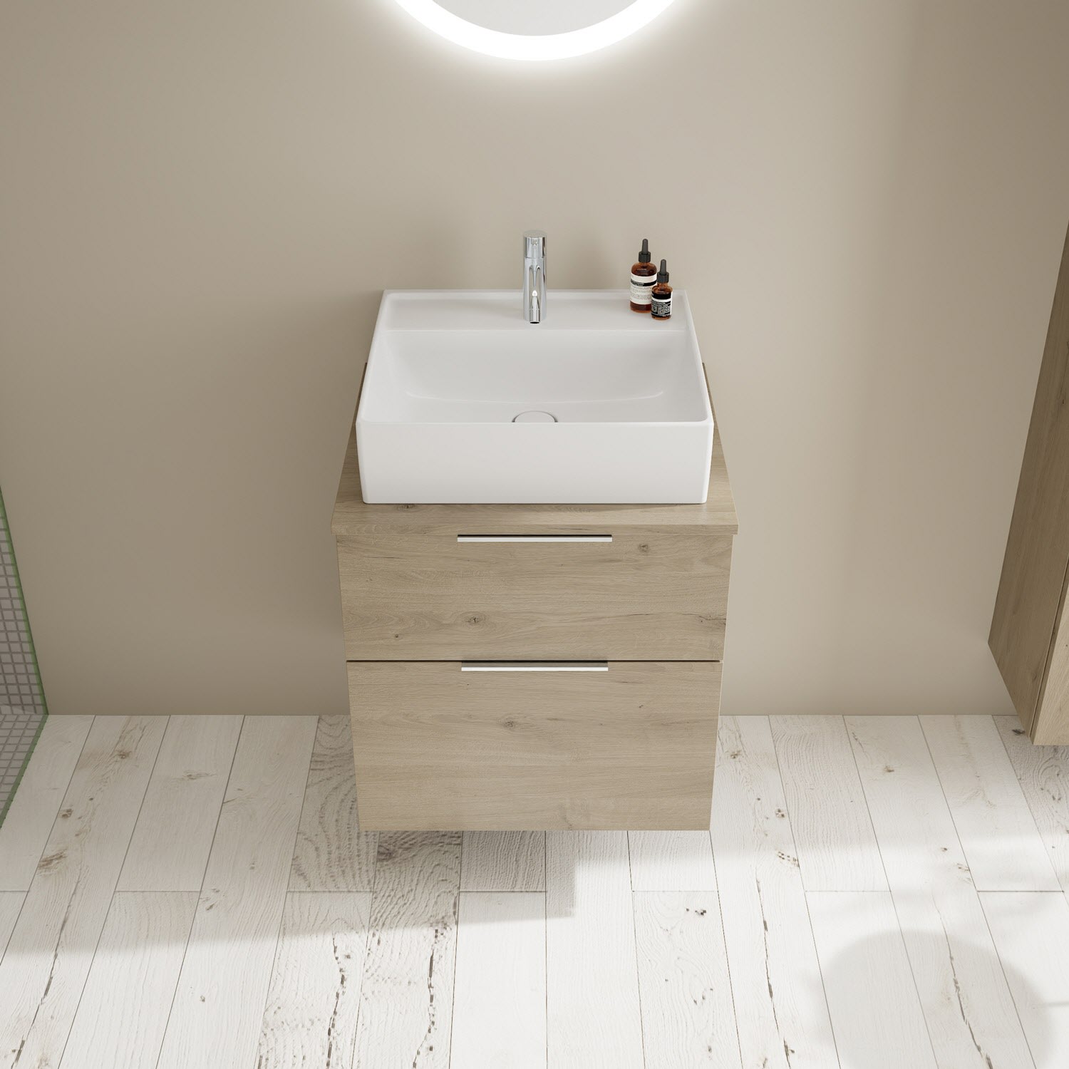 burgbad Eqio Waschtischkombination mit Keramik-Aufsatzwaschtisch 60 cm, mit Griff G0146