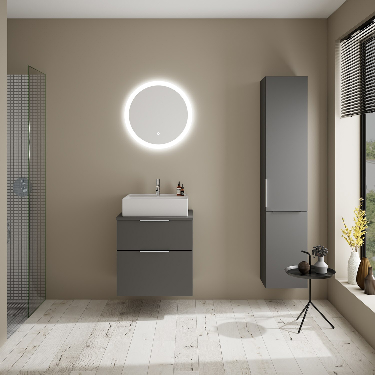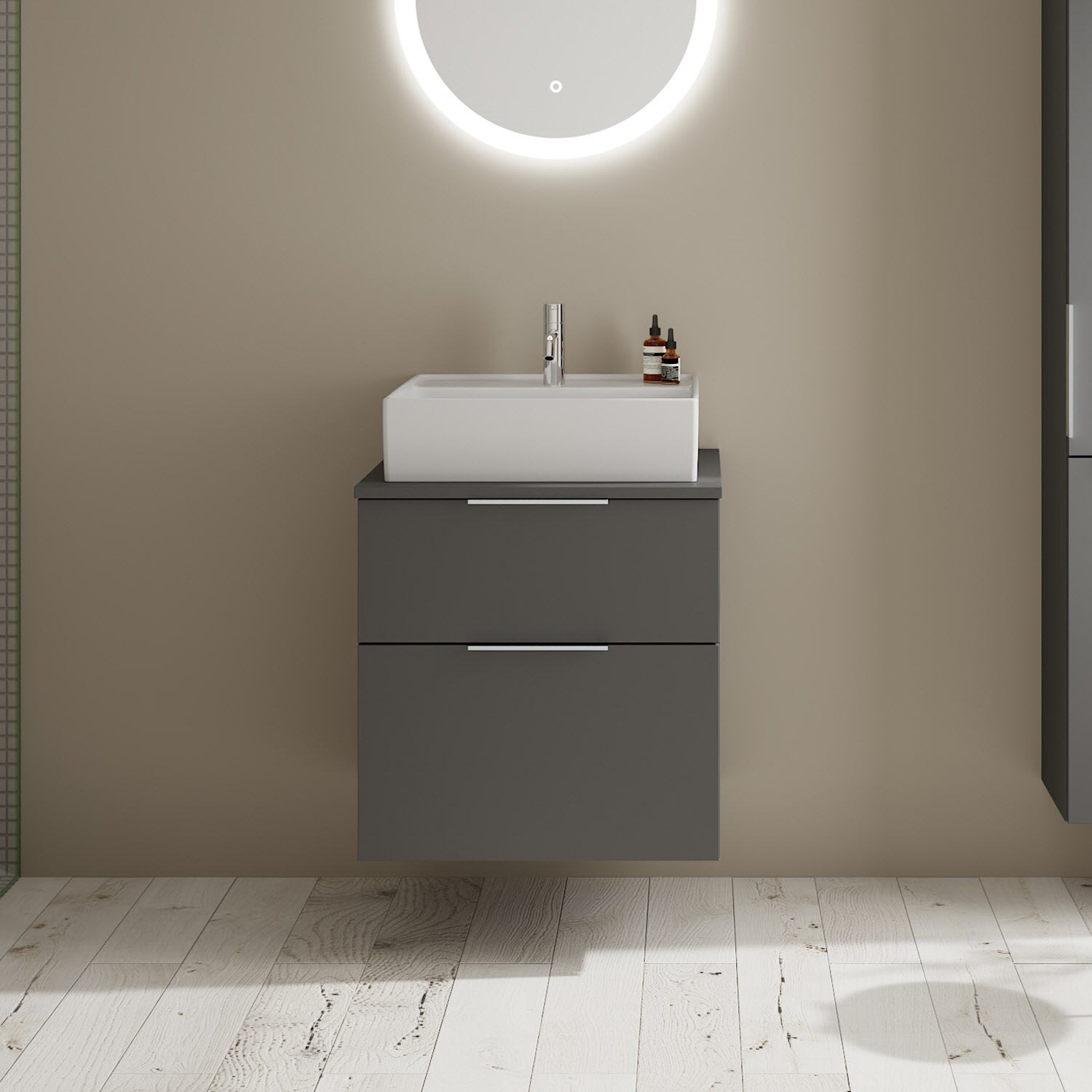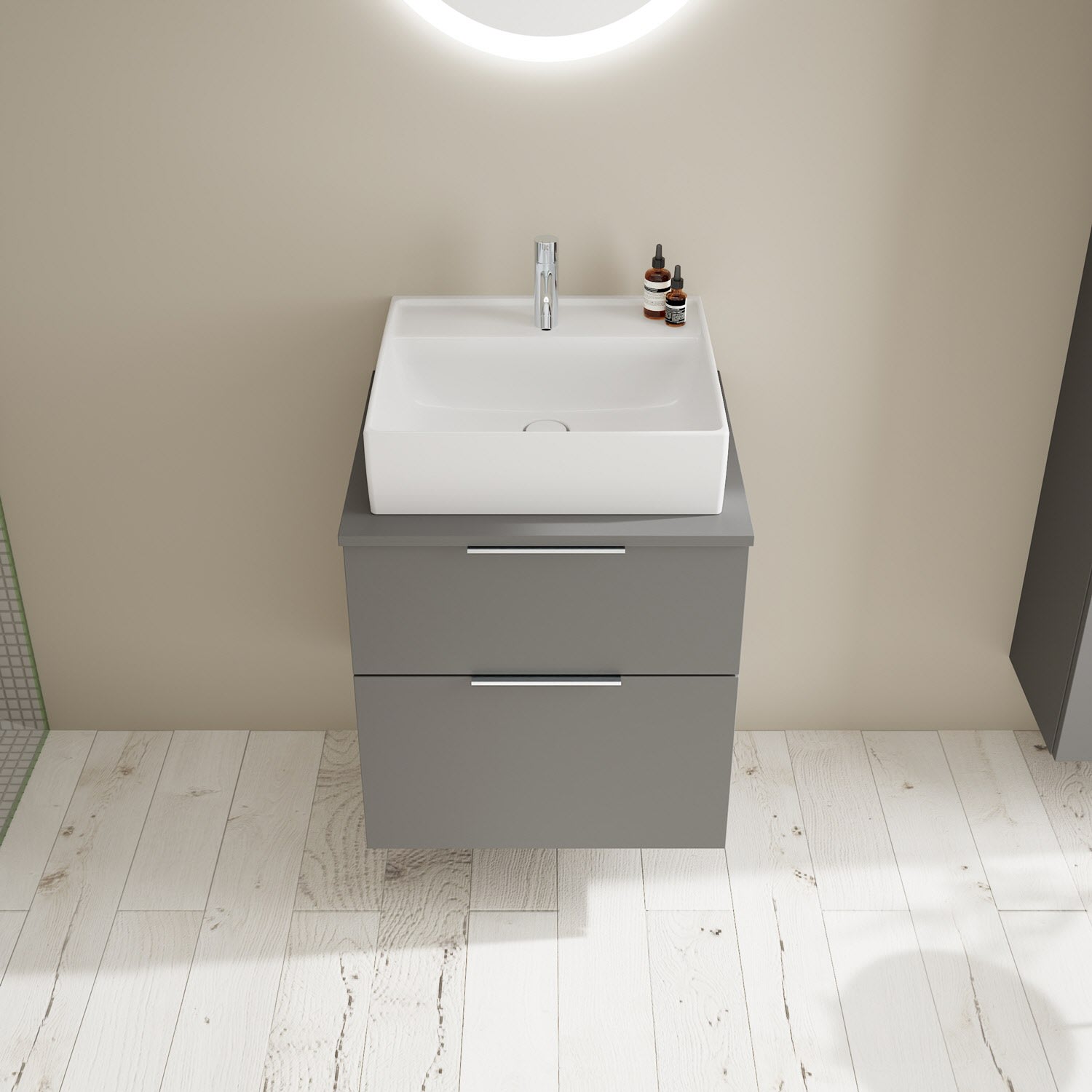 burgbad Eqio Waschtischkombination mit Keramik-Aufsatzwaschtisch 60 cm, mit Griff G0146