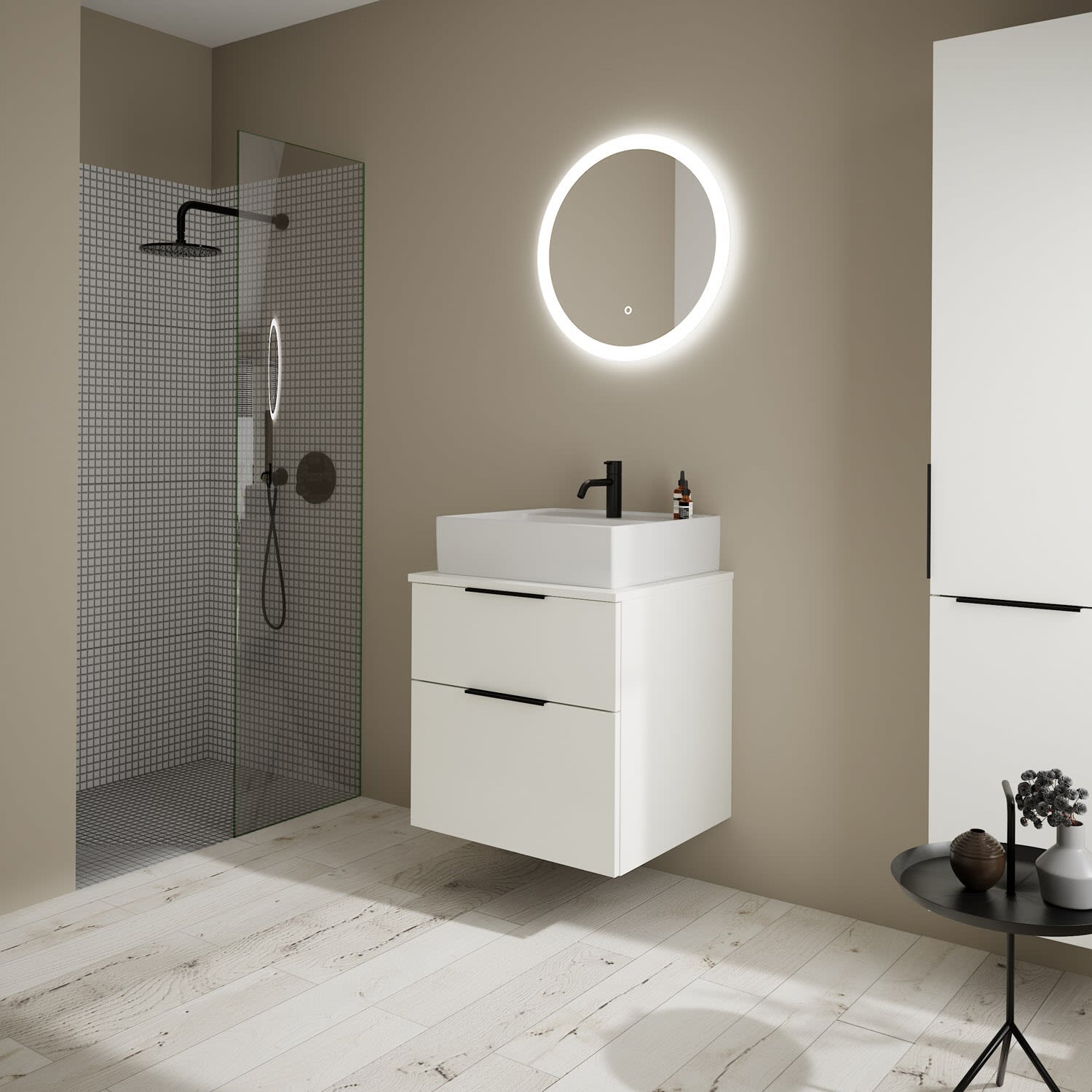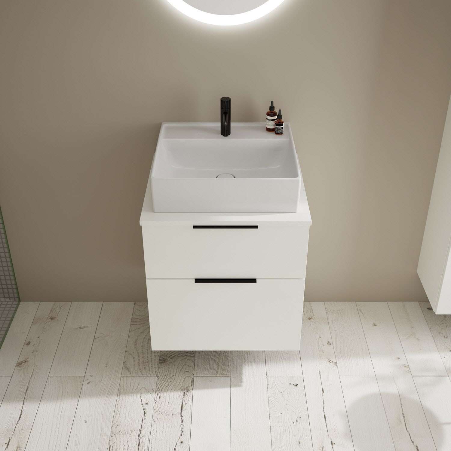 burgbad Eqio Waschtischkombination mit Keramik-Aufsatzwaschtisch 60 cm, mit Griff G0200