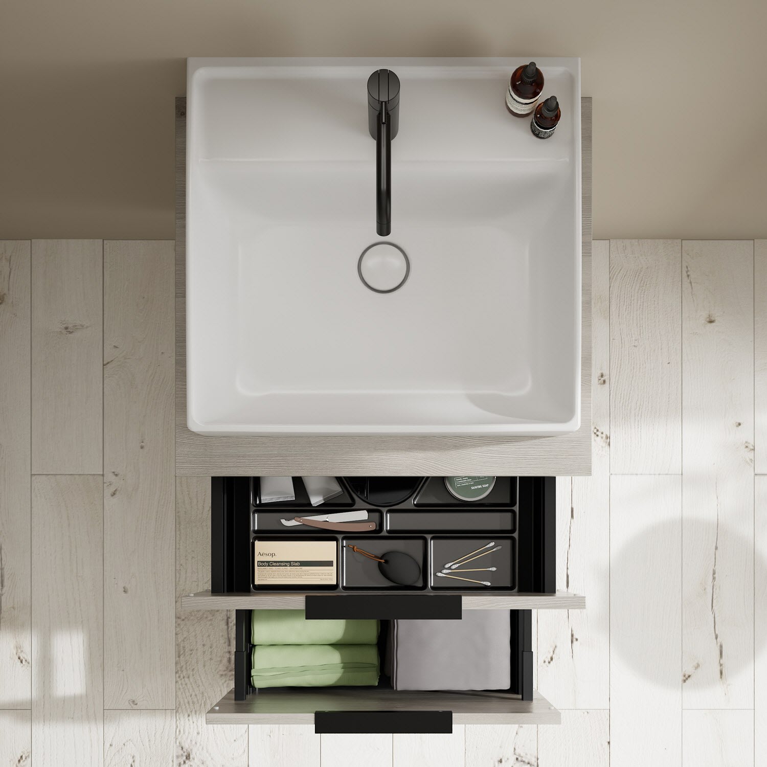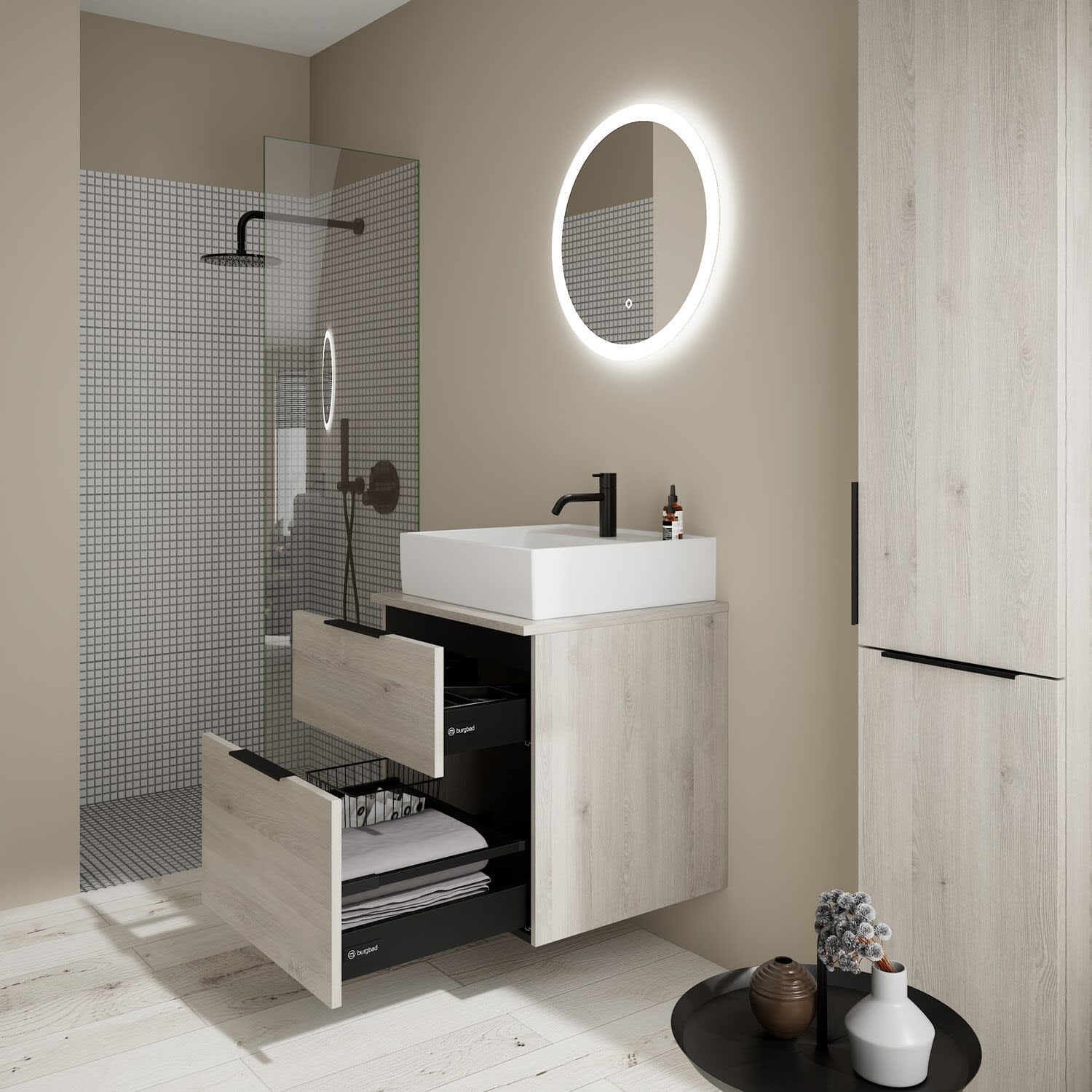 burgbad Eqio Waschtischkombination mit Keramik-Aufsatzwaschtisch 60 cm, mit Griff G0200
