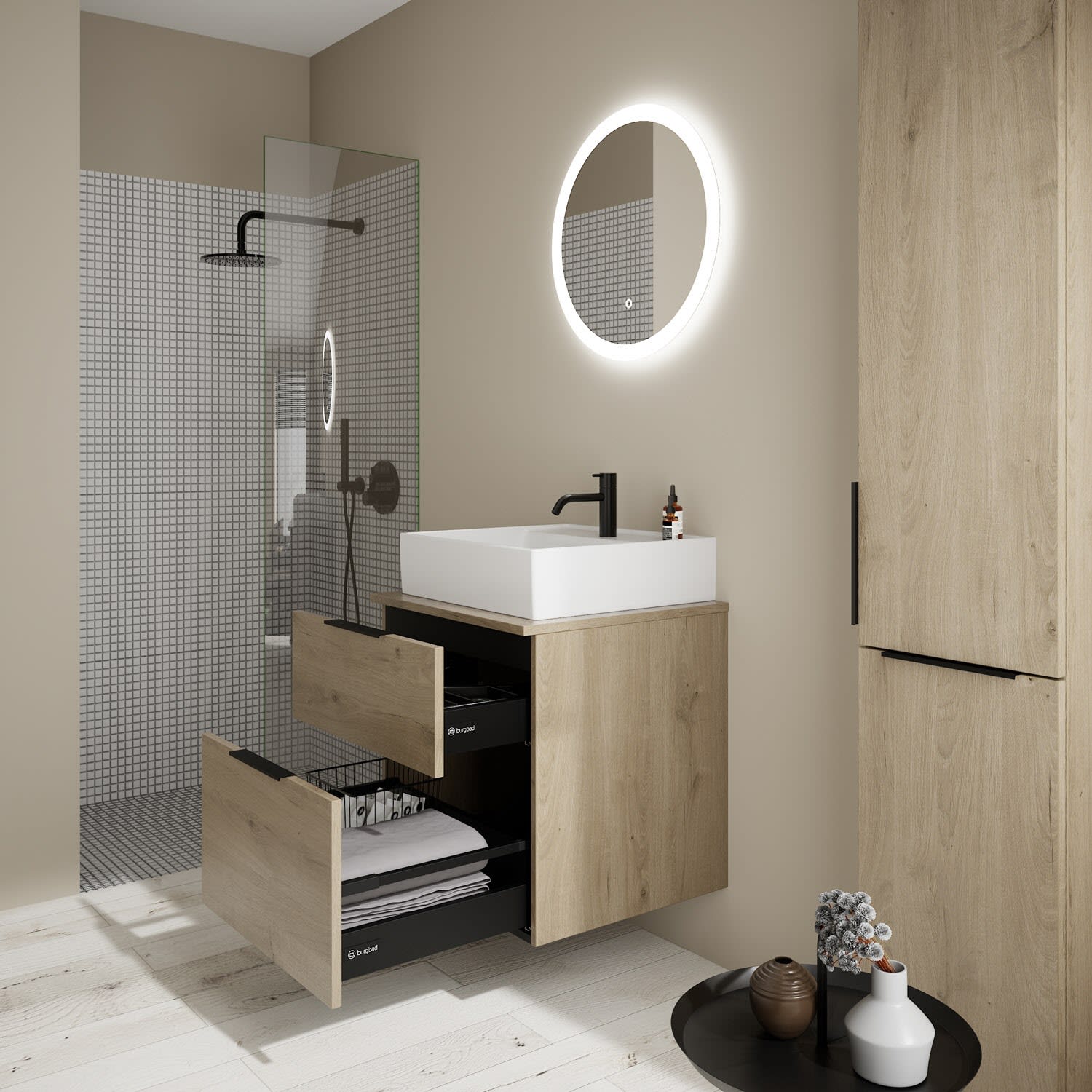 burgbad Eqio Waschtischkombination mit Keramik-Aufsatzwaschtisch 60 cm, mit Griff G0200
