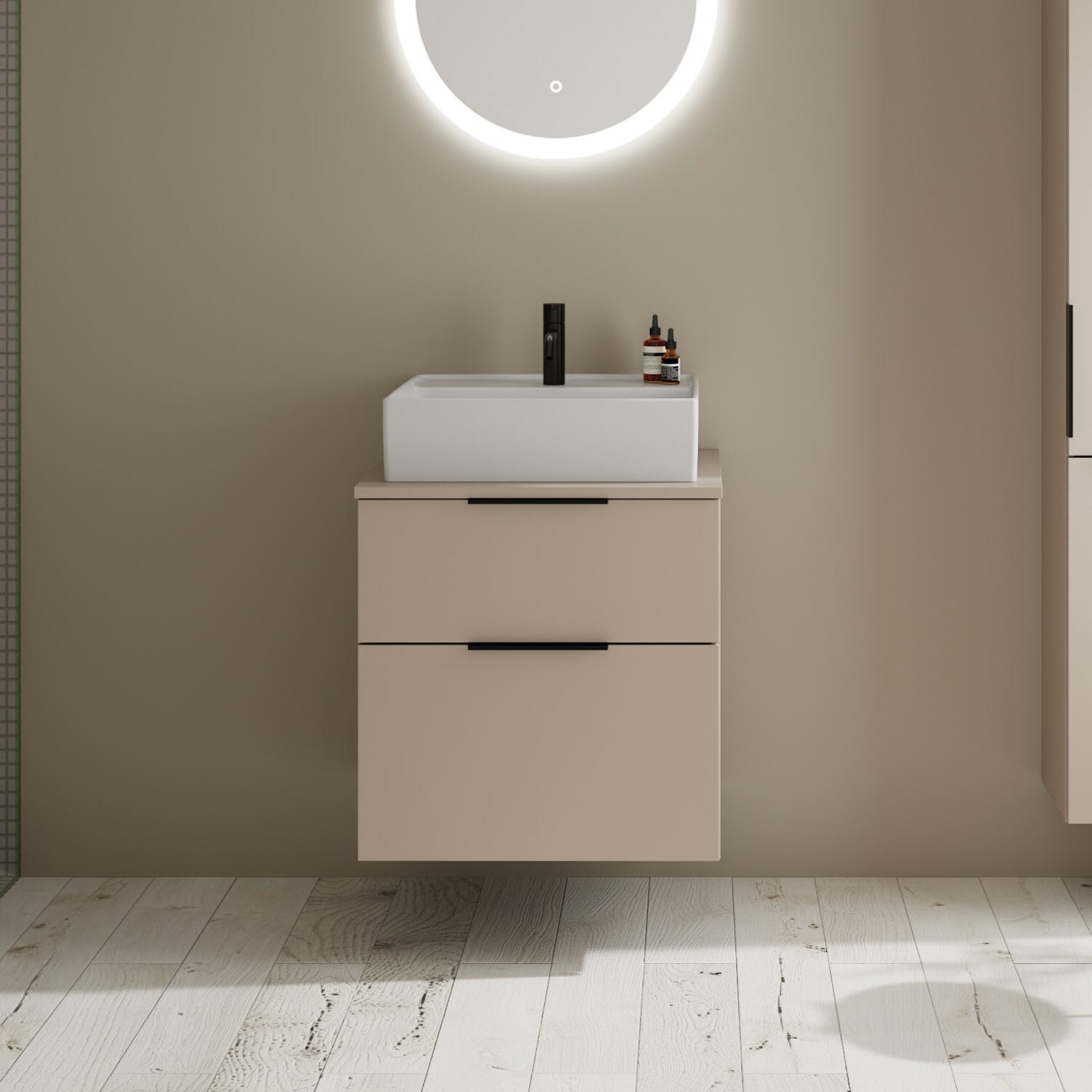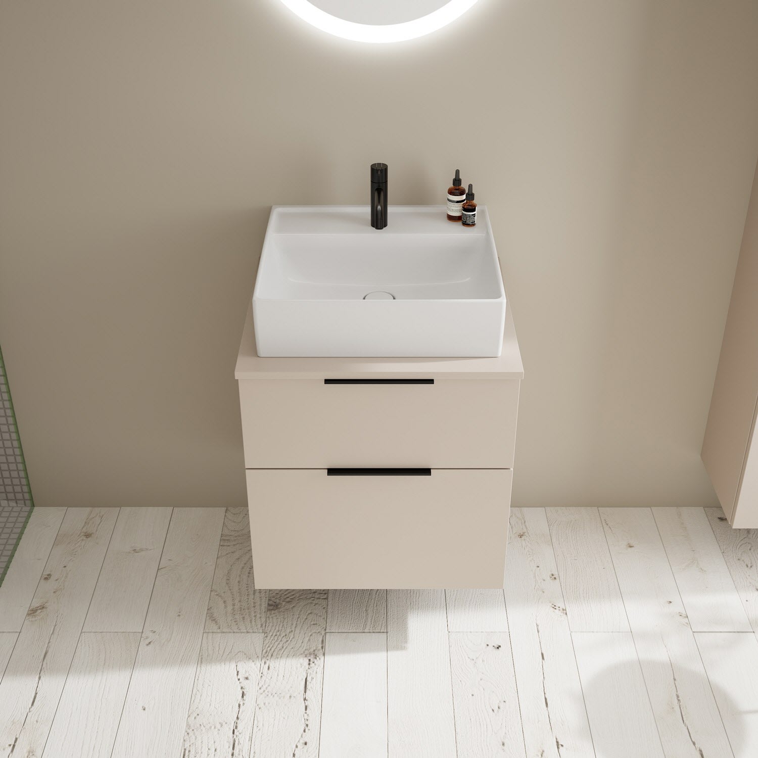 burgbad Eqio Waschtischkombination mit Keramik-Aufsatzwaschtisch 60 cm, mit Griff G0200
