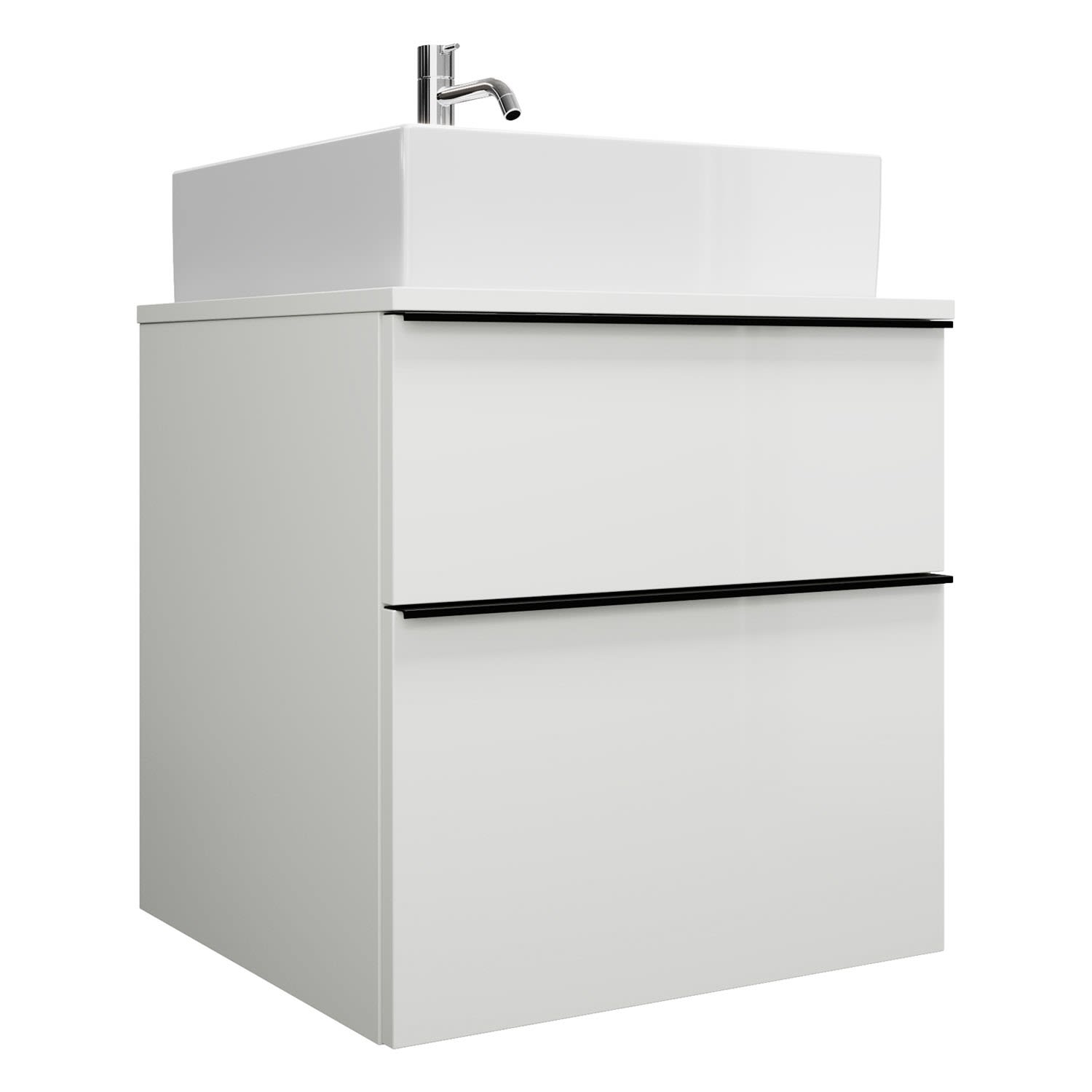 burgbad Eqio Waschtischkombination mit Keramik-Aufsatzwaschtisch 60 cm, mit Griffleiste G0252