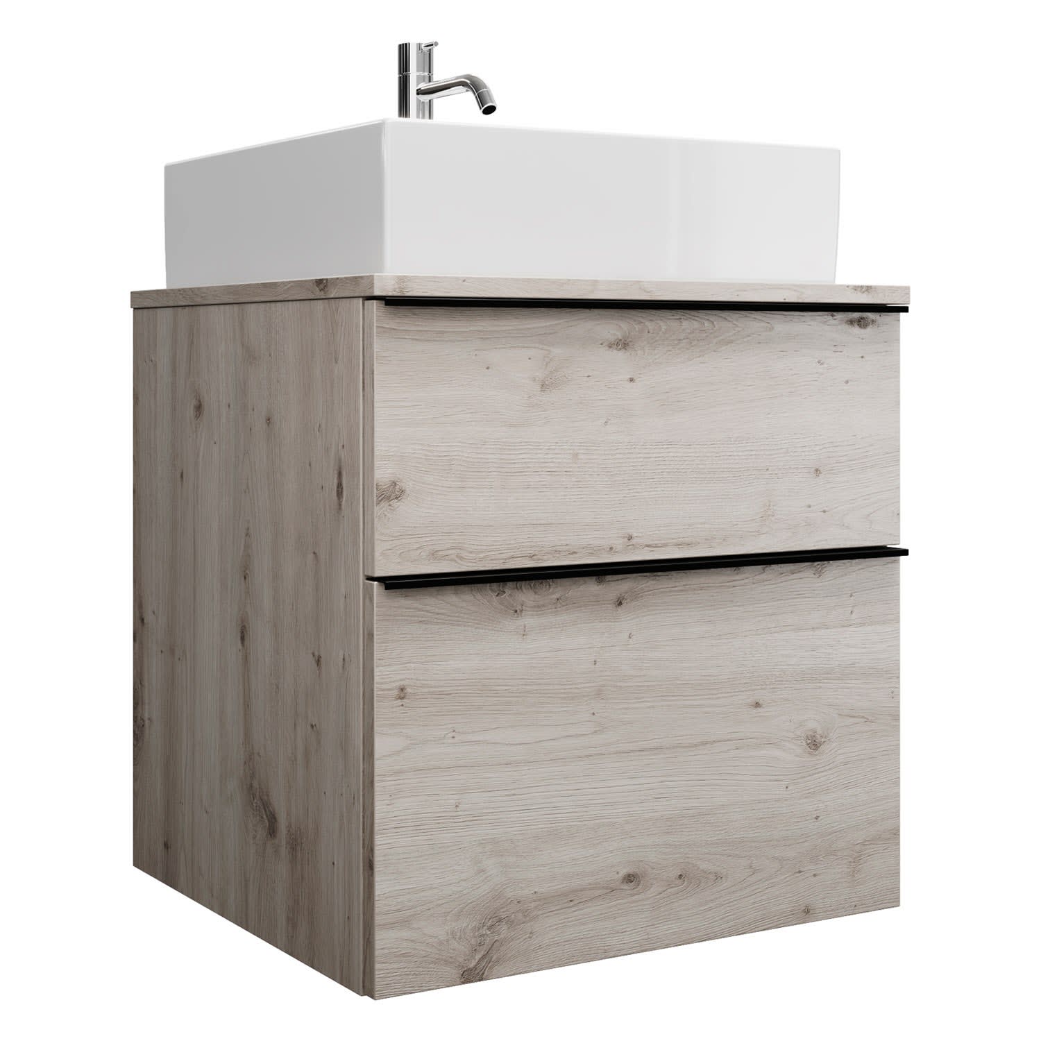 burgbad Eqio Waschtischkombination mit Keramik-Aufsatzwaschtisch 60 cm, mit Griffleiste G0252