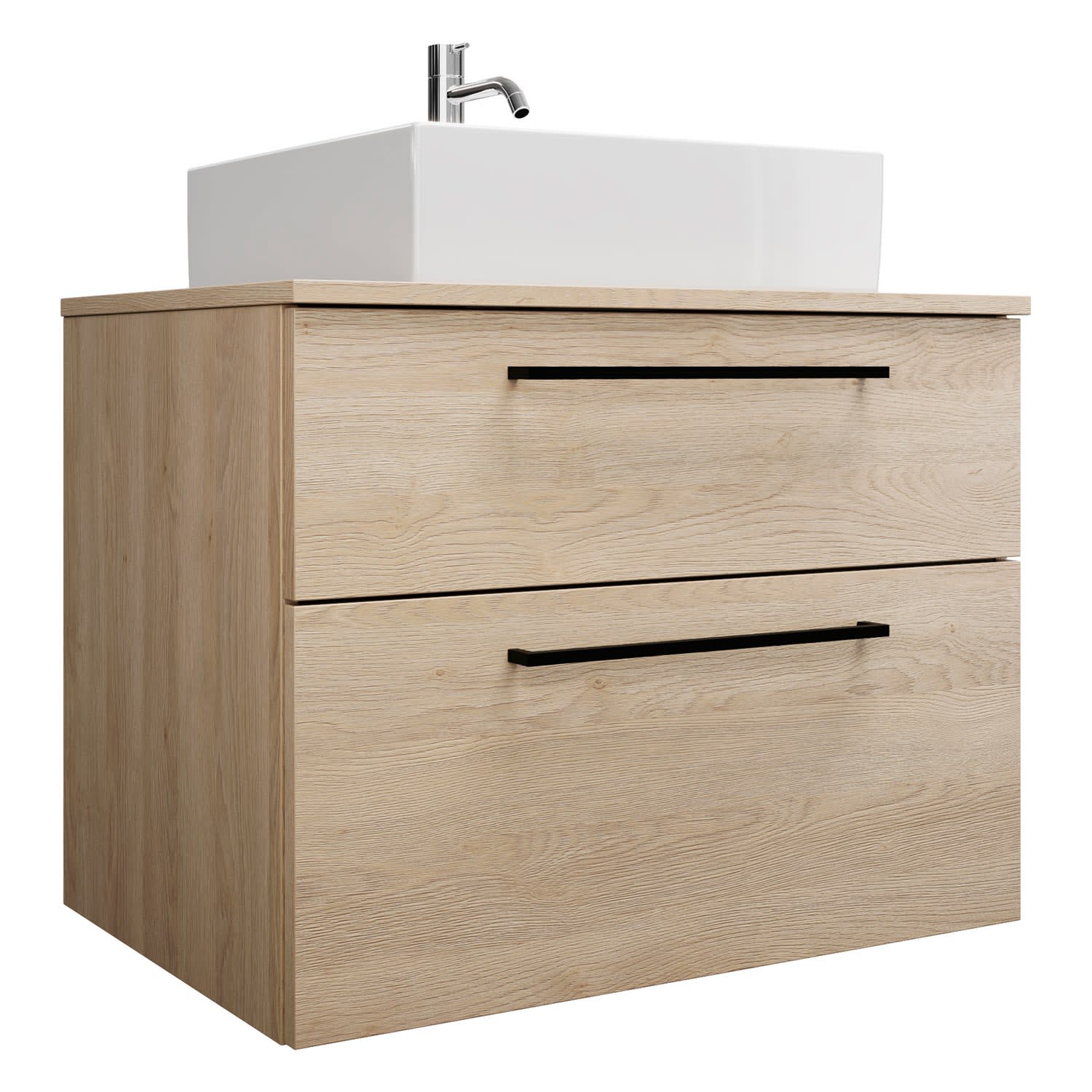burgbad Eqio Waschtischkombination mit Keramik-Aufsatzwaschtisch 80 cm, mit Stangengriff P0234