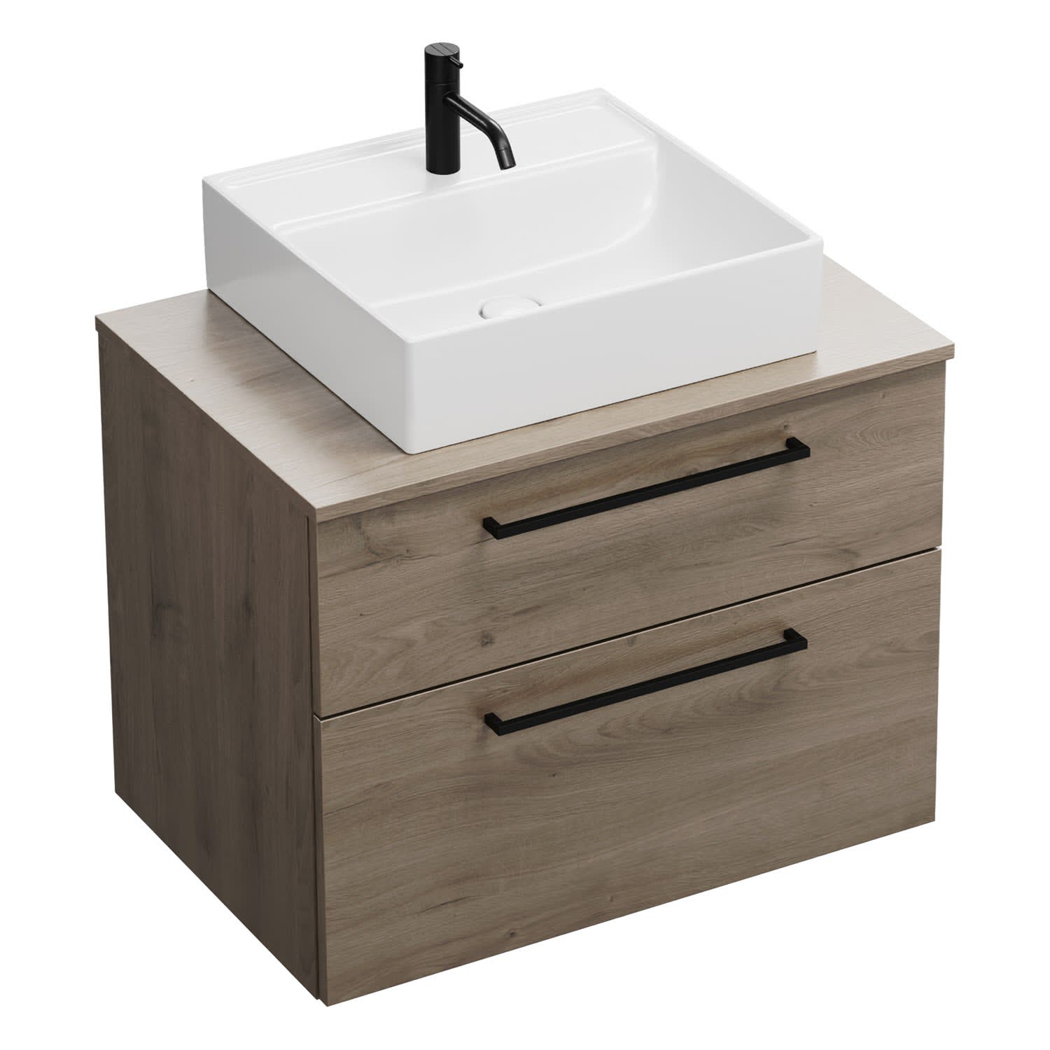 burgbad Eqio Waschtischkombination mit Keramik-Aufsatzwaschtisch 80 cm, mit Stangengriff P0234