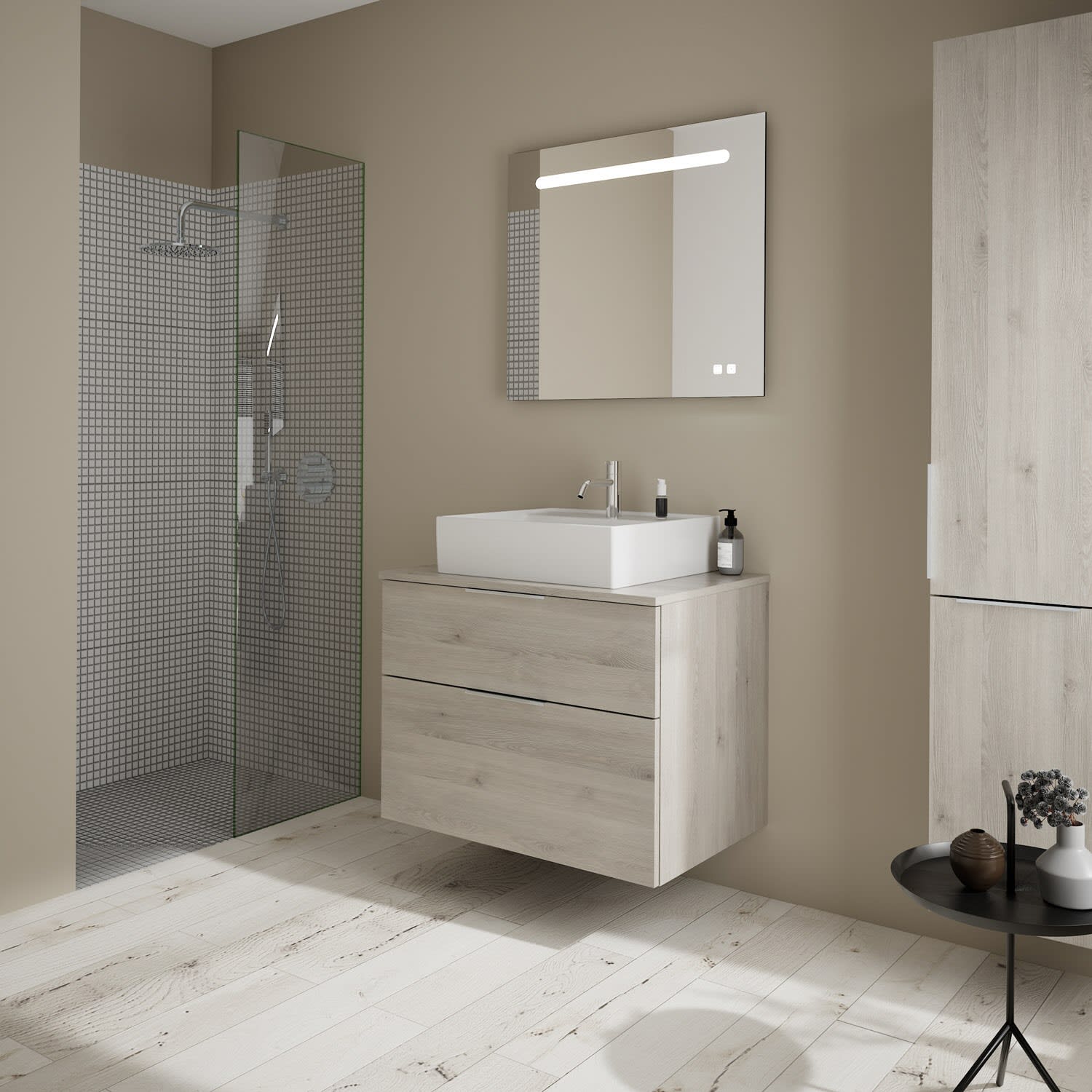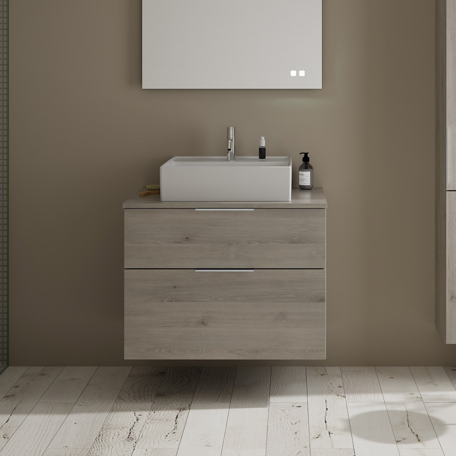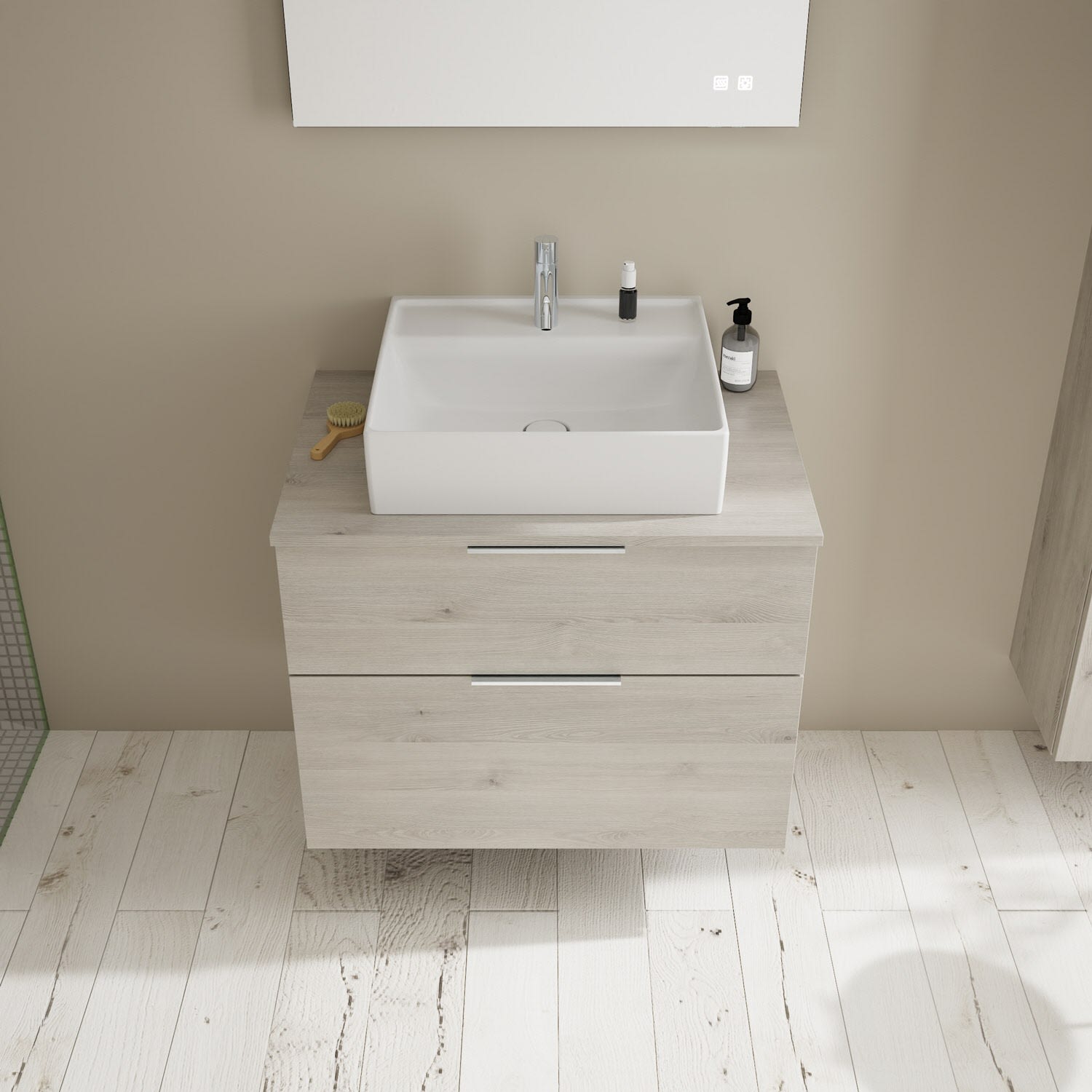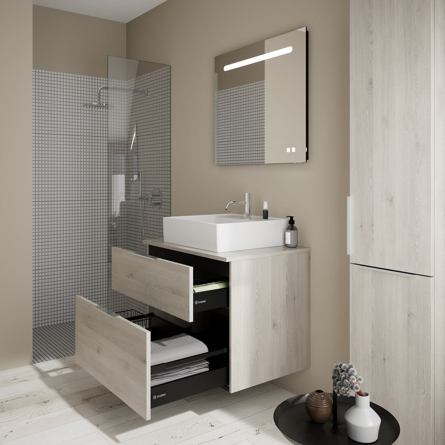 burgbad Eqio Waschtischkombination mit Keramik-Aufsatzwaschtisch 80 cm, mit Griff P0146