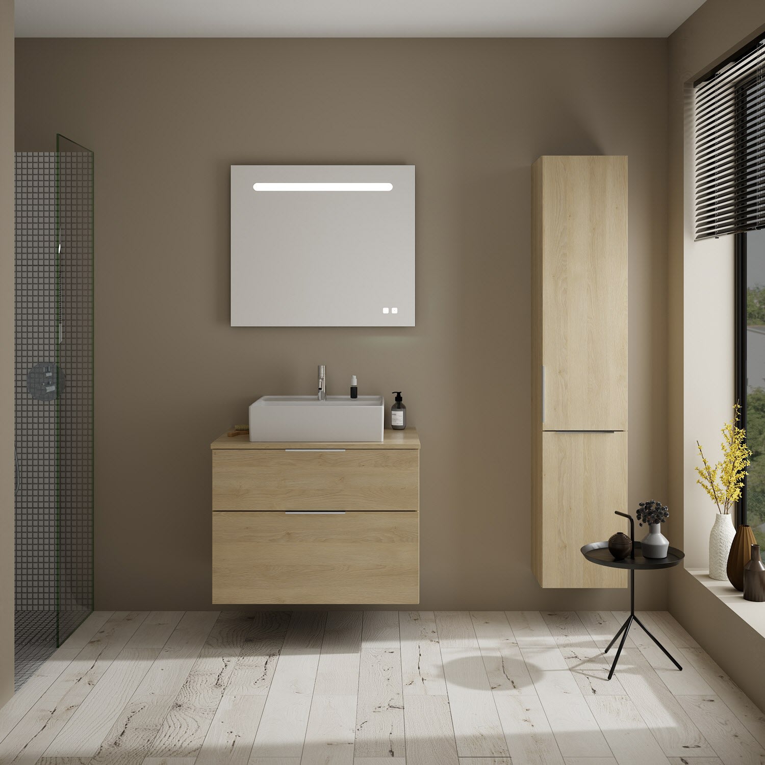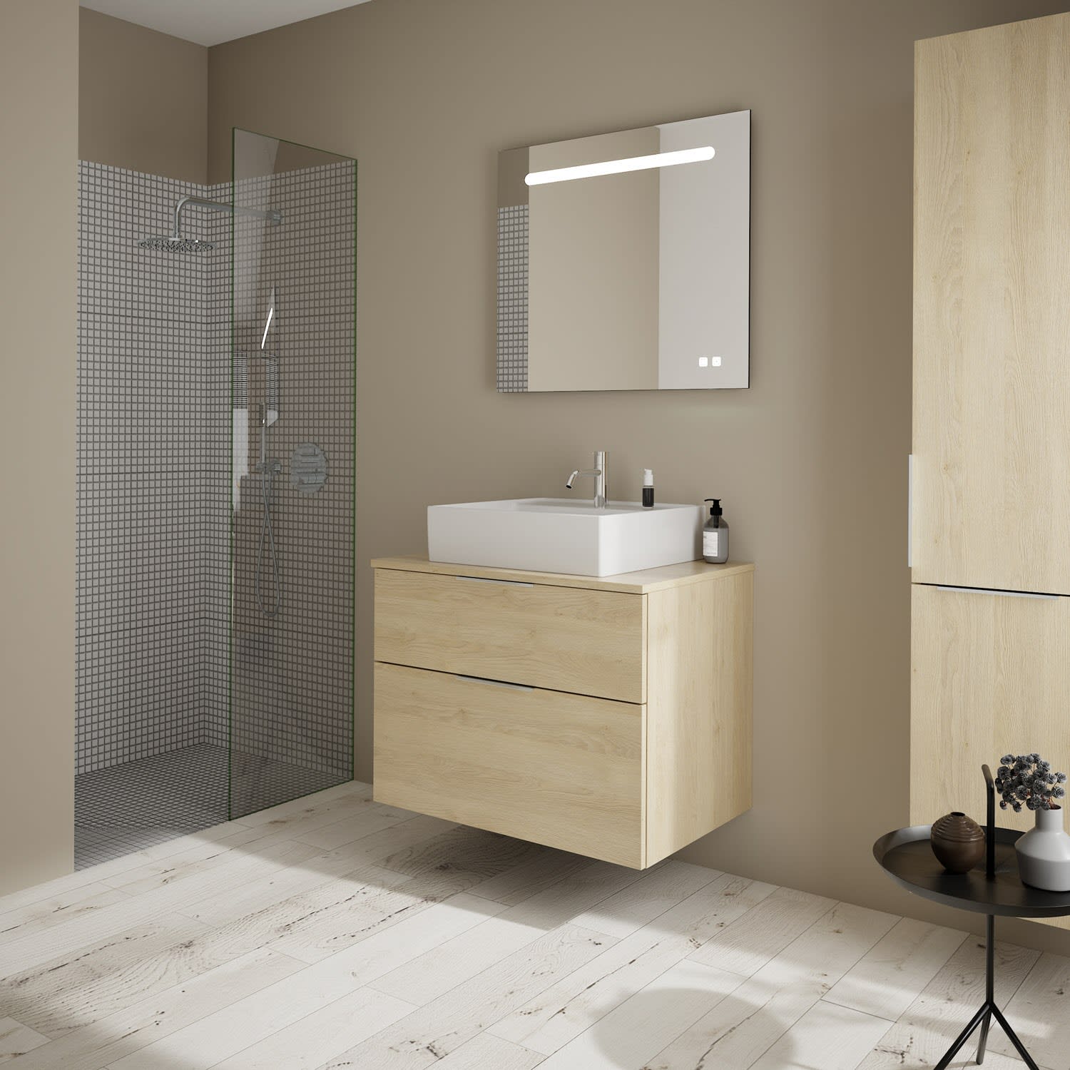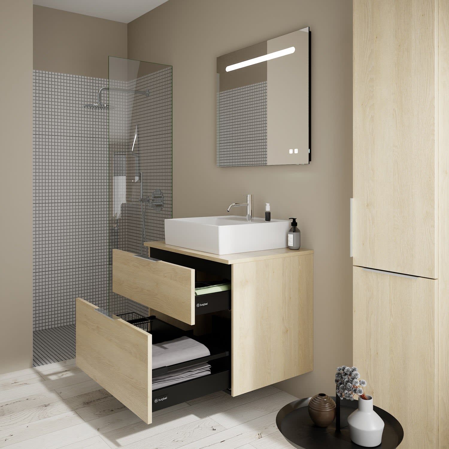 burgbad Eqio Waschtischkombination mit Keramik-Aufsatzwaschtisch 80 cm, mit Griff P0146