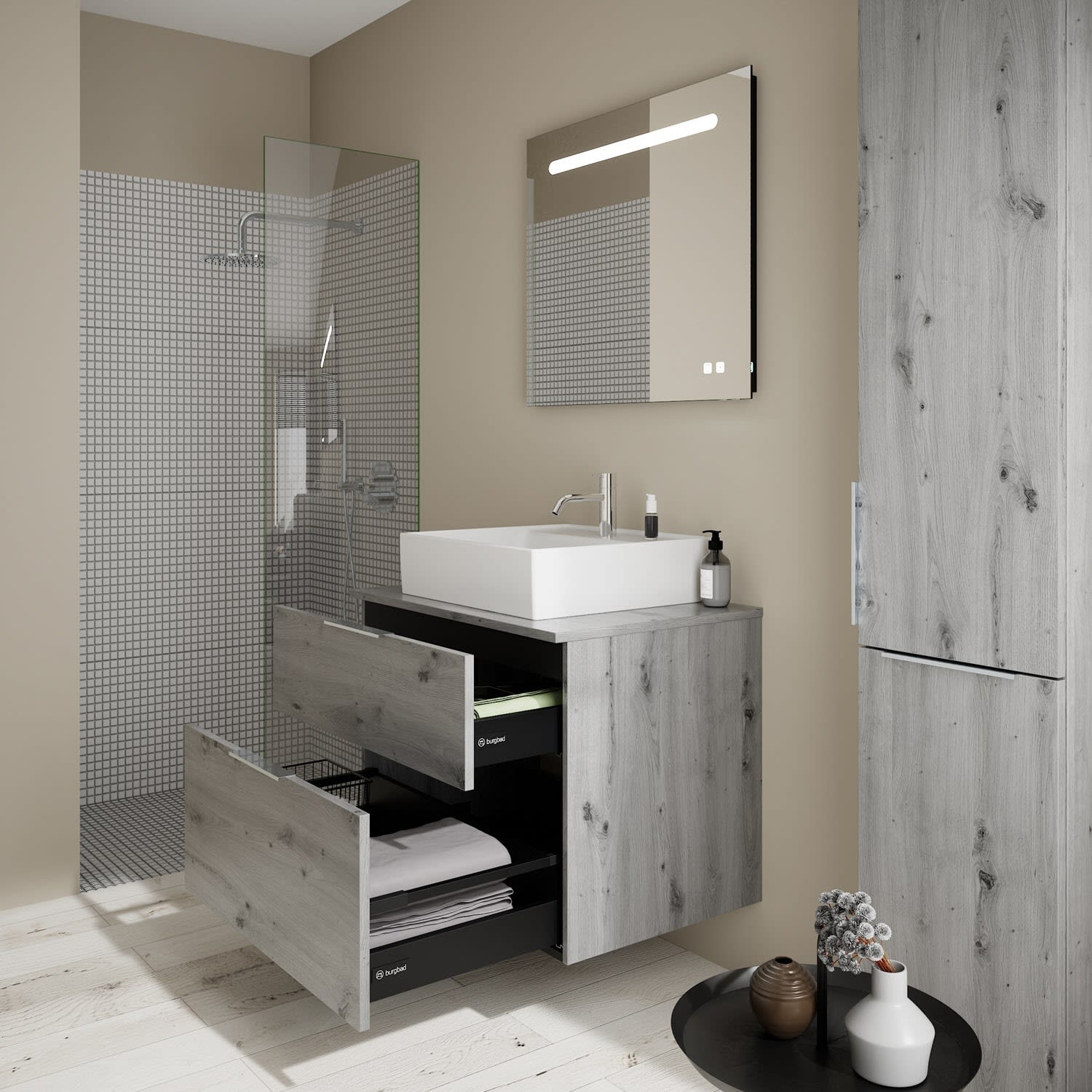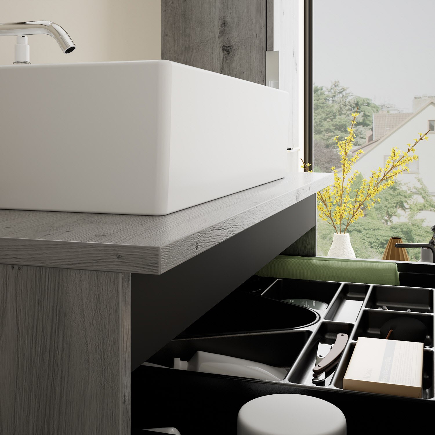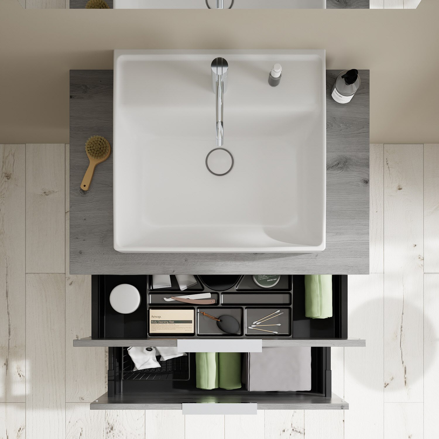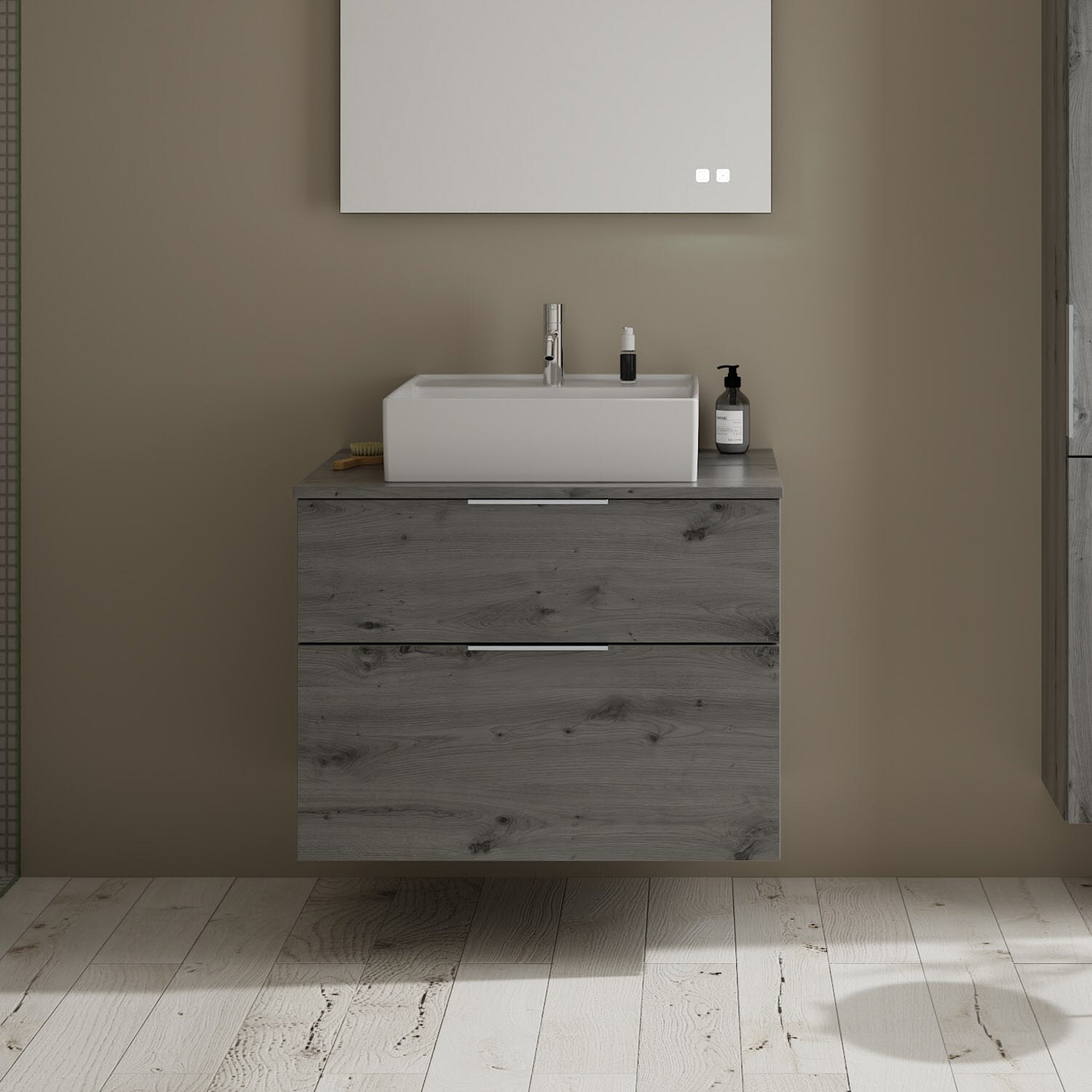 burgbad Eqio Waschtischkombination mit Keramik-Aufsatzwaschtisch 80 cm, mit Griff P0146
