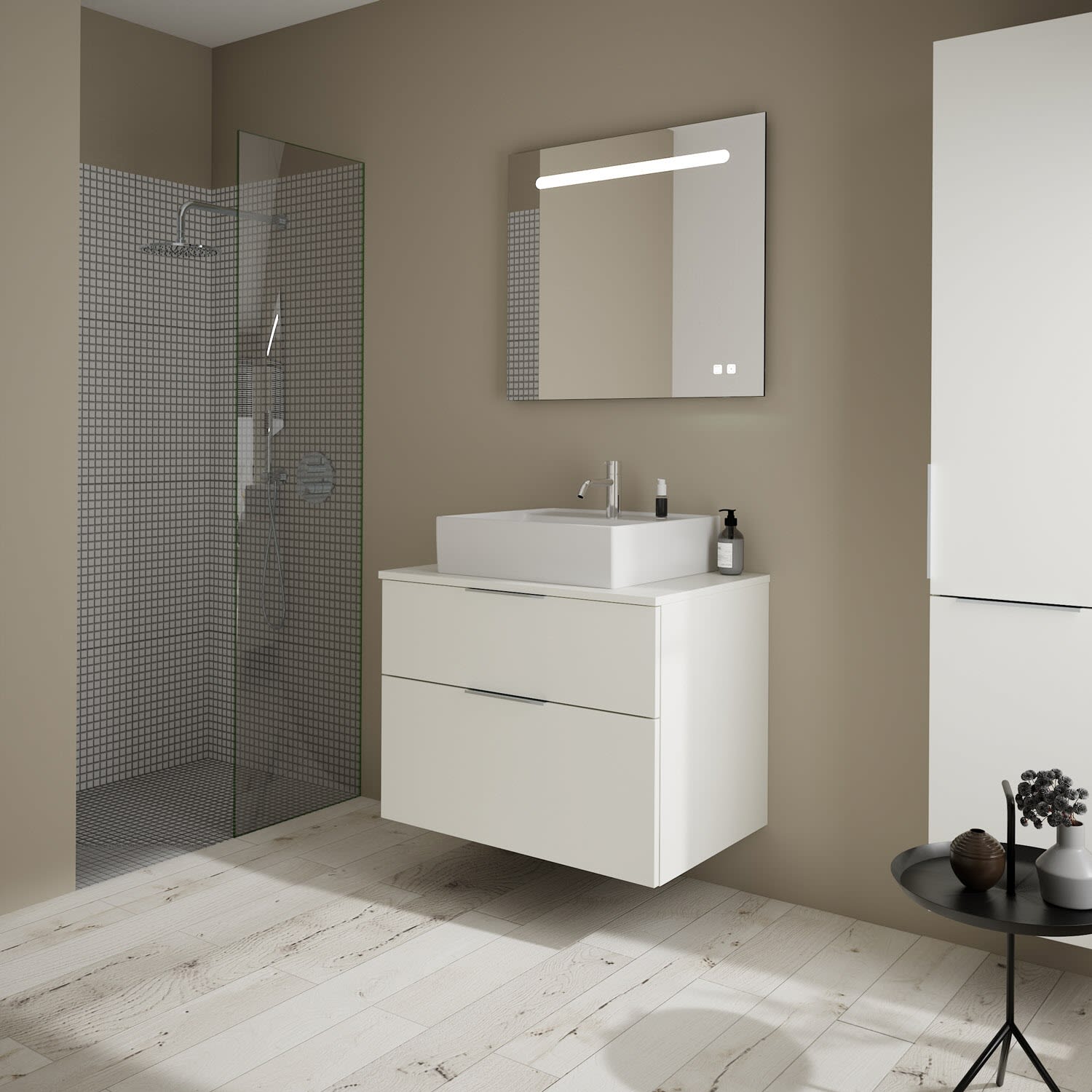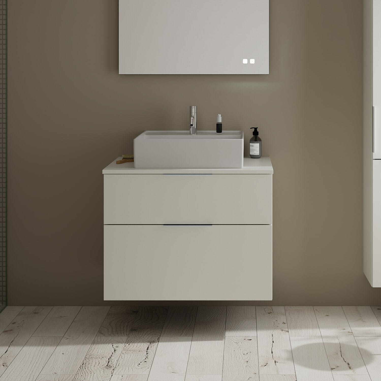 burgbad Eqio Waschtischkombination mit Keramik-Aufsatzwaschtisch 80 cm, mit Griff P0146