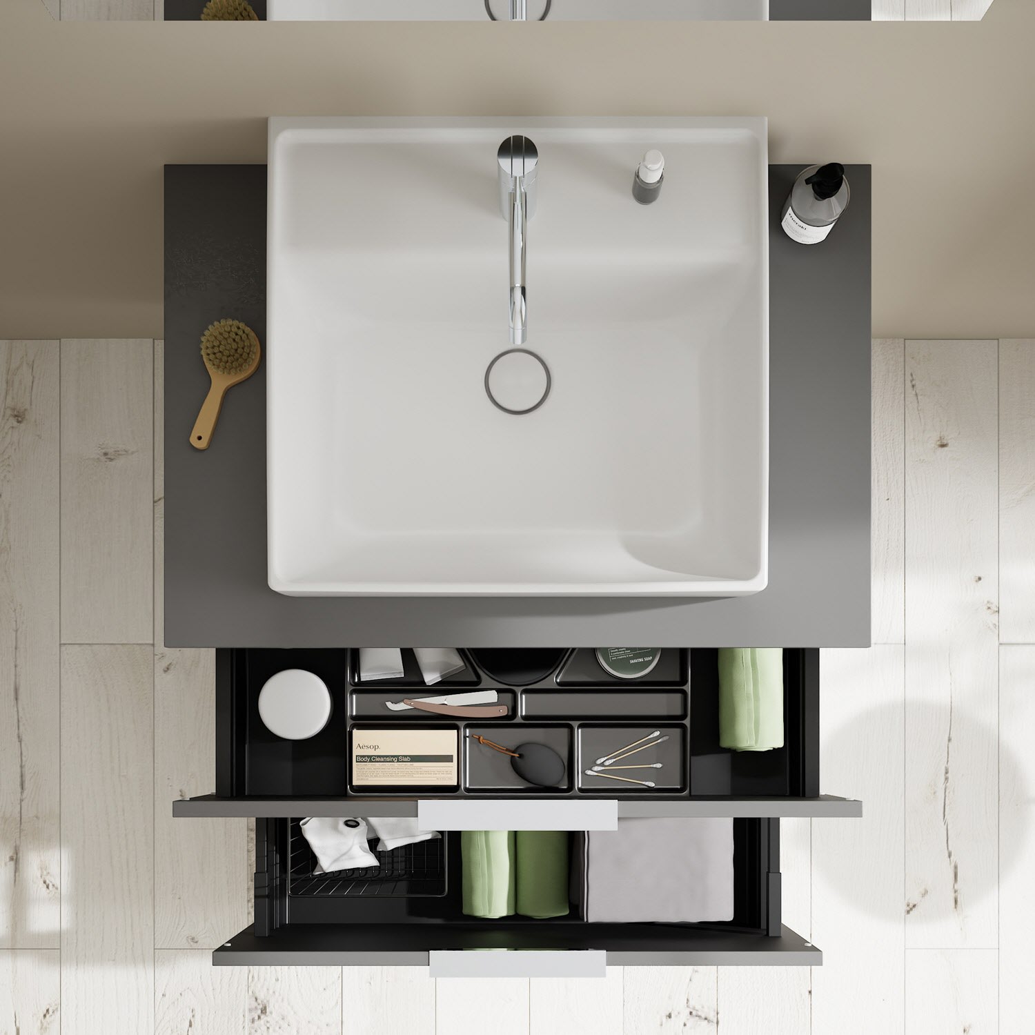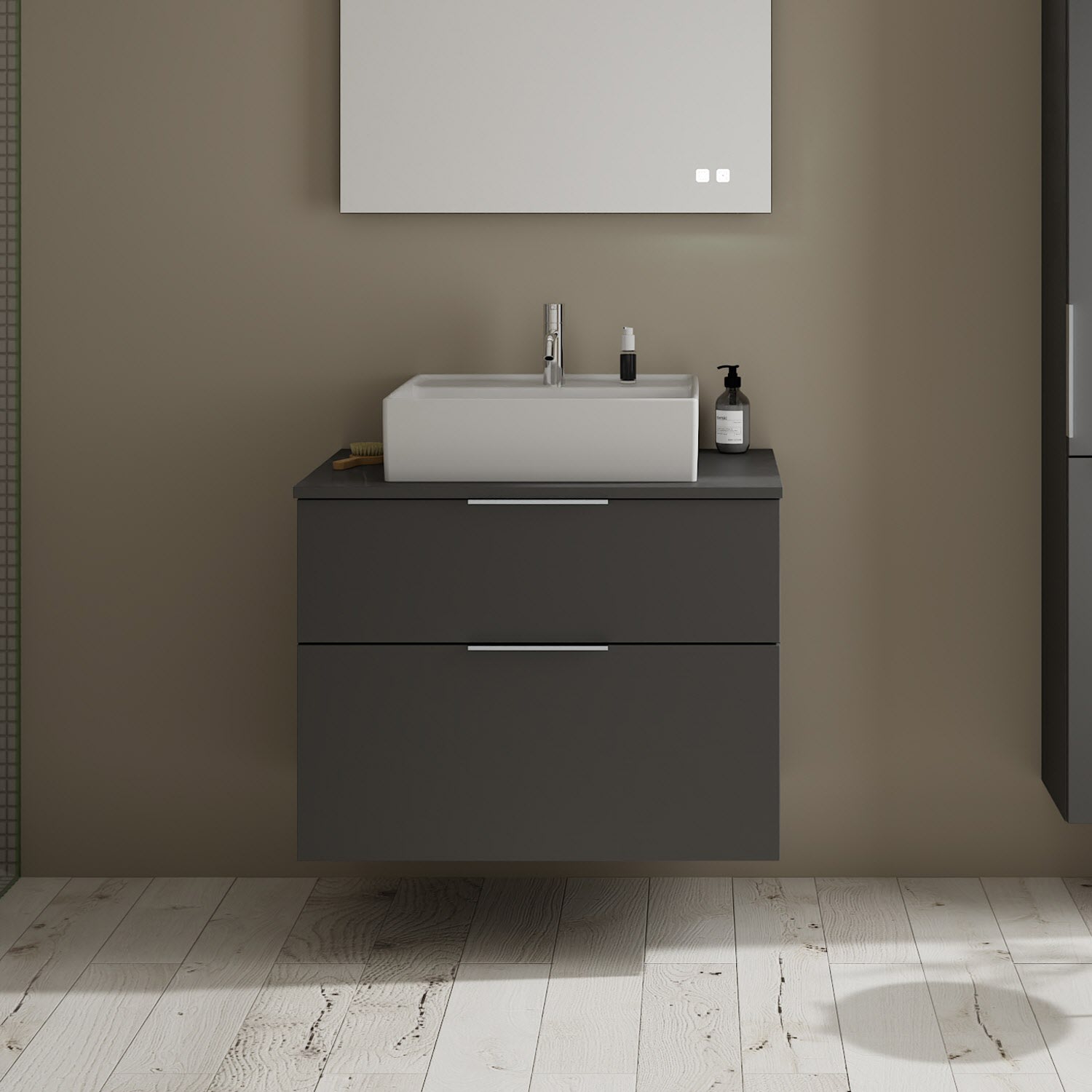 burgbad Eqio Waschtischkombination mit Keramik-Aufsatzwaschtisch 80 cm, mit Griff P0146
