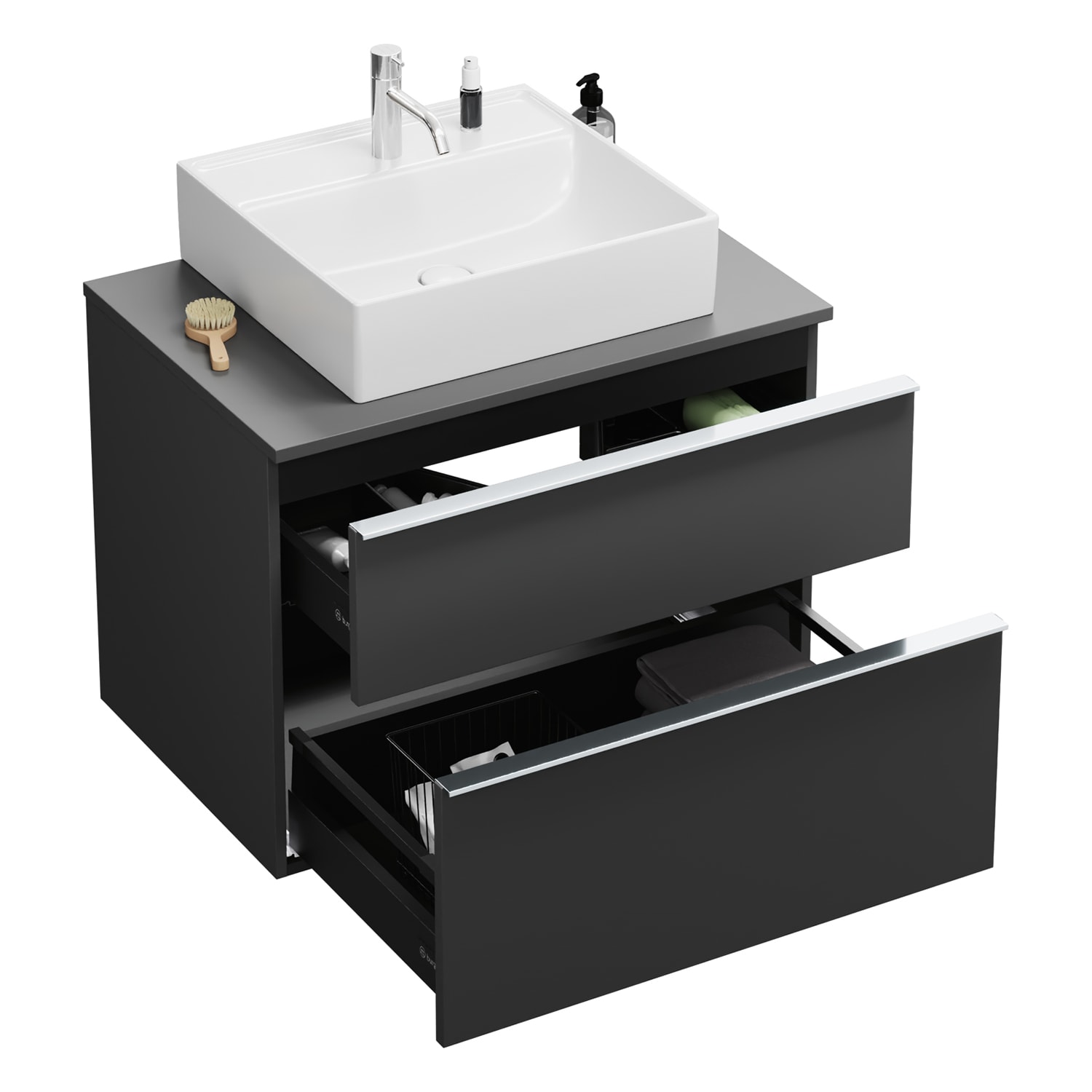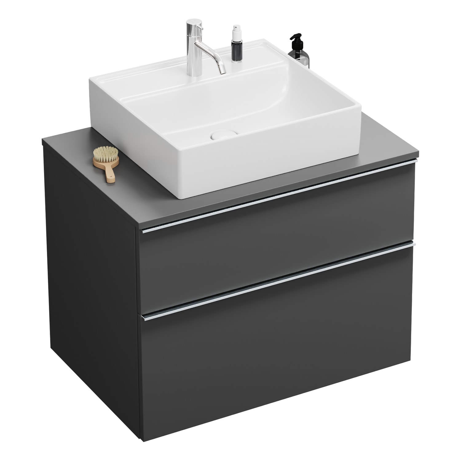 burgbad Eqio Waschtischkombination mit Keramik-Aufsatzwaschtisch 80 cm, mit Griffleiste P0251