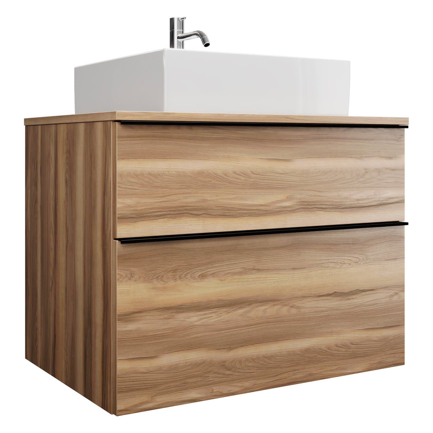 burgbad Eqio Waschtischkombination mit Keramik-Aufsatzwaschtisch 80 cm, mit Griffleiste P0252