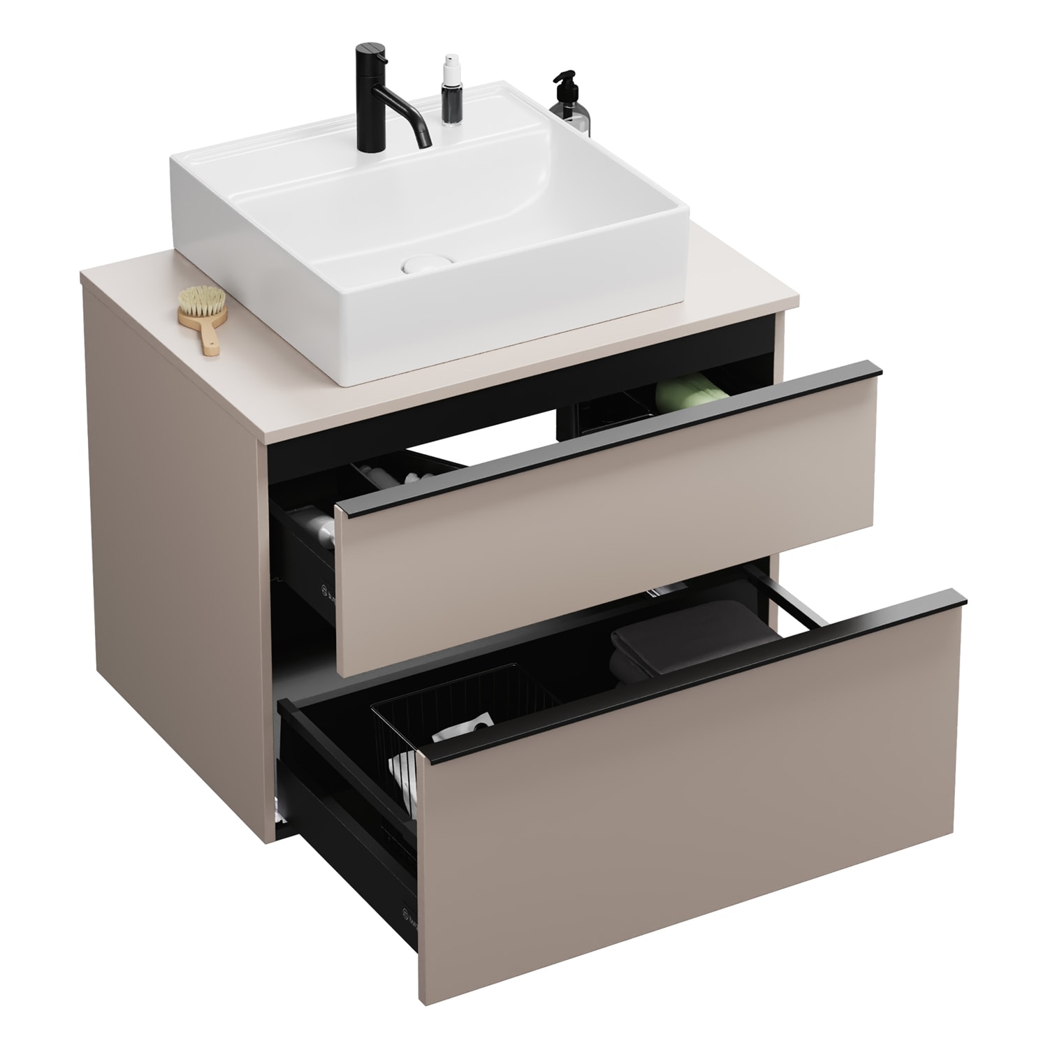 burgbad Eqio Waschtischkombination mit Keramik-Aufsatzwaschtisch 80 cm, mit Griffleiste P0252