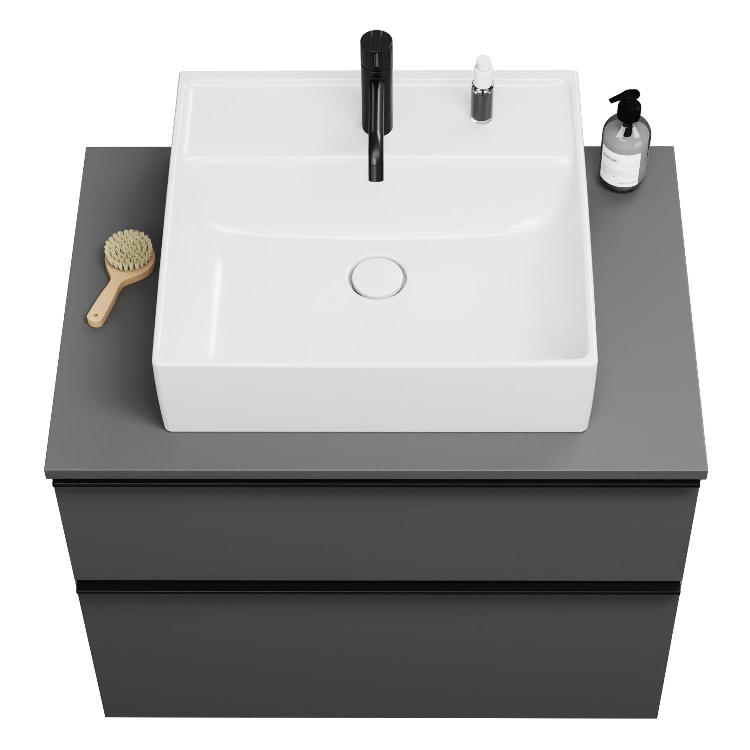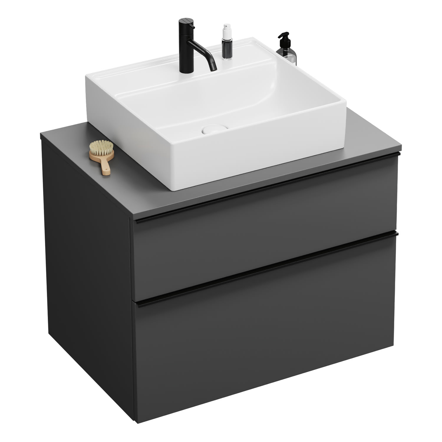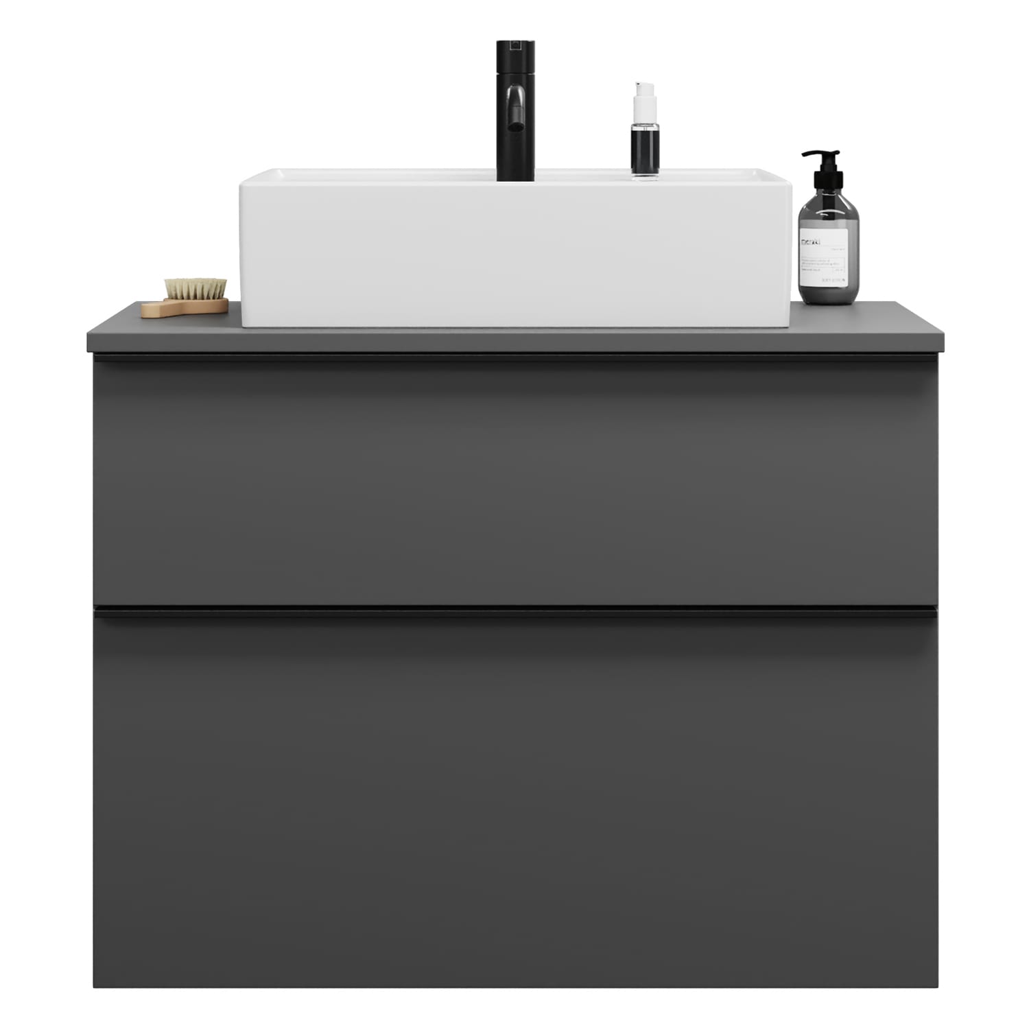 burgbad Eqio Waschtischkombination mit Keramik-Aufsatzwaschtisch 80 cm, mit Griffleiste P0252