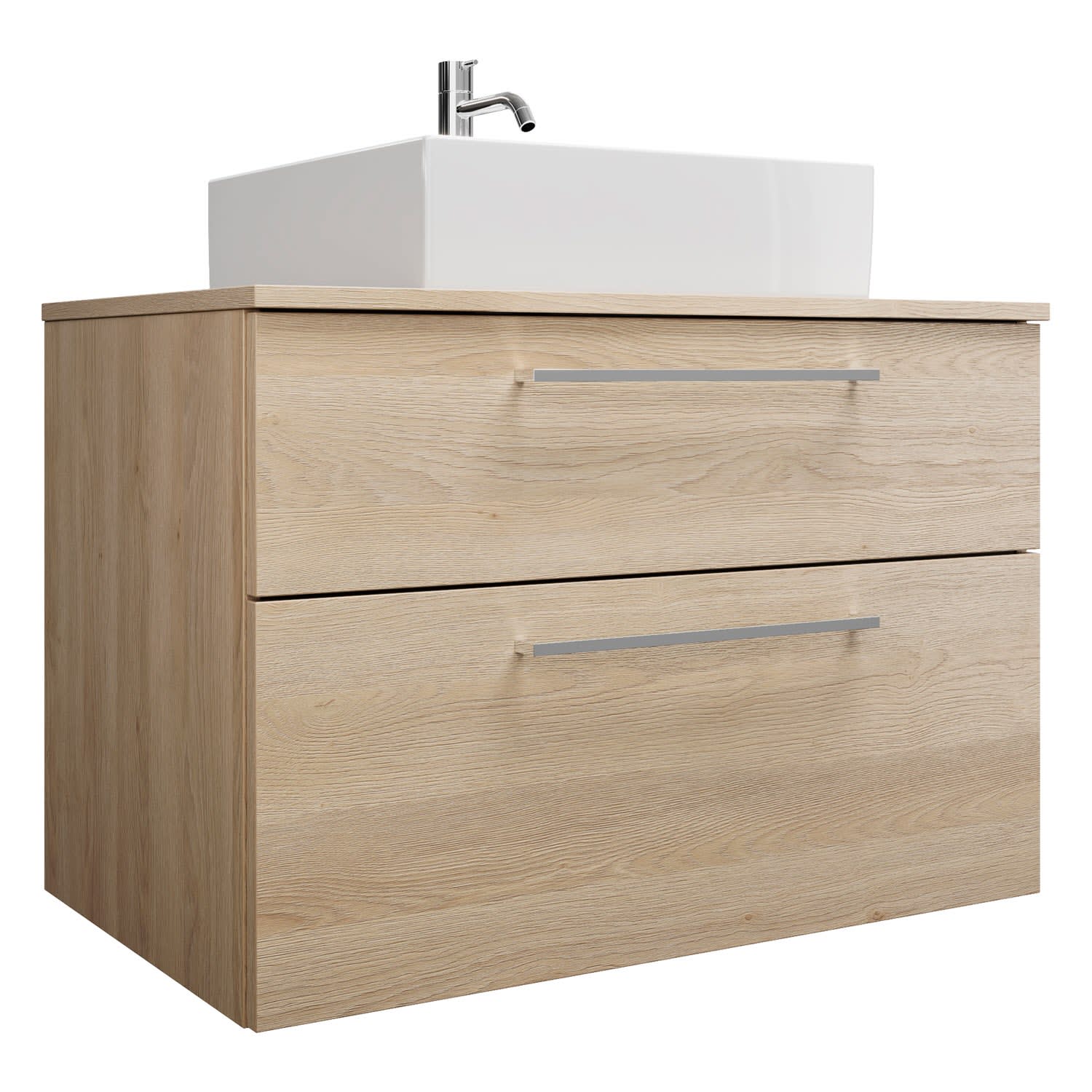 burgbad Eqio Waschtischkombination mit Keramik-Aufsatzwaschtisch 90 cm, mit Stangengriff P95