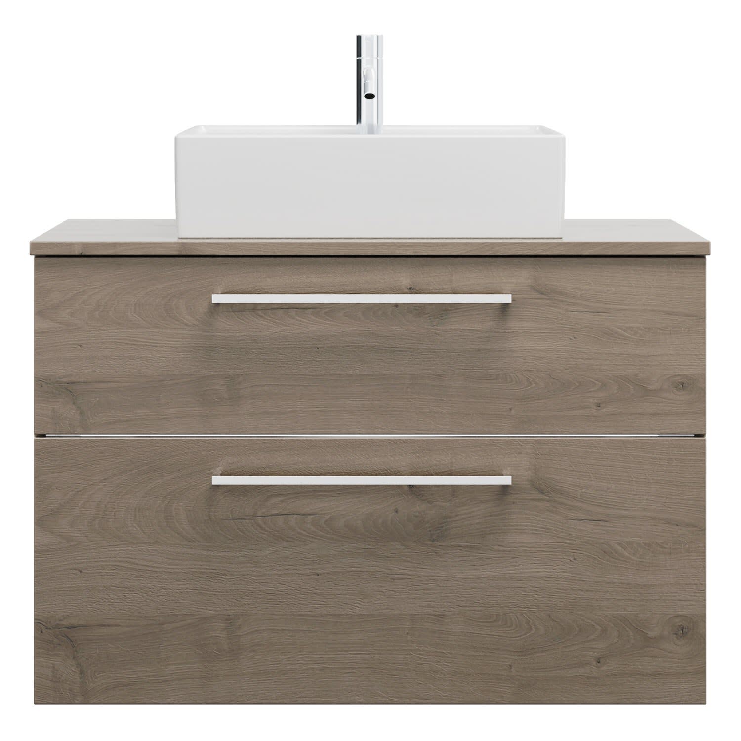 burgbad Eqio Waschtischkombination mit Keramik-Aufsatzwaschtisch 90 cm, mit Stangengriff P95