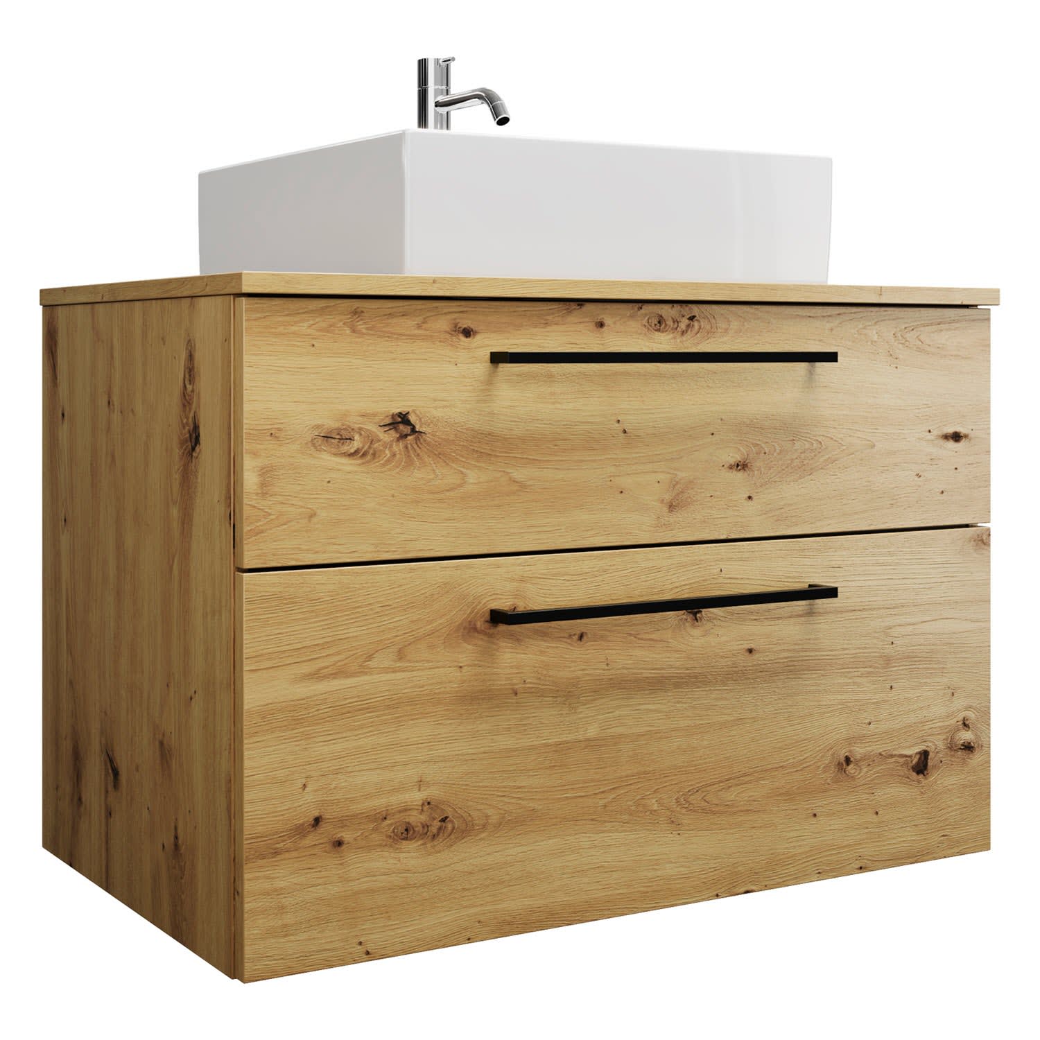 burgbad Eqio Waschtischkombination mit Keramik-Aufsatzwaschtisch 90 cm, mit Stangengriff G0234