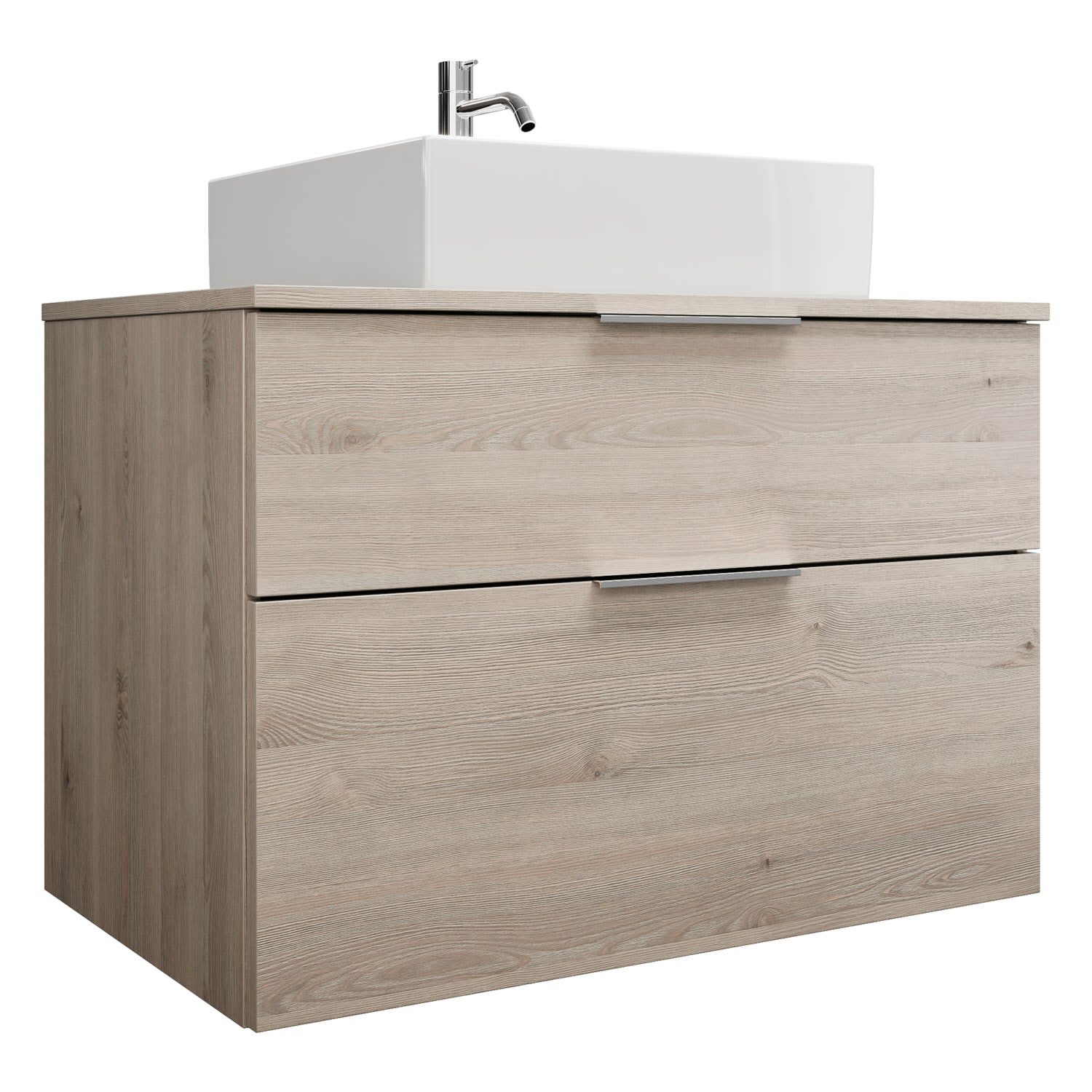 burgbad Eqio Waschtischkombination mit Keramik-Aufsatzwaschtisch 90 cm, mit Griff G0146