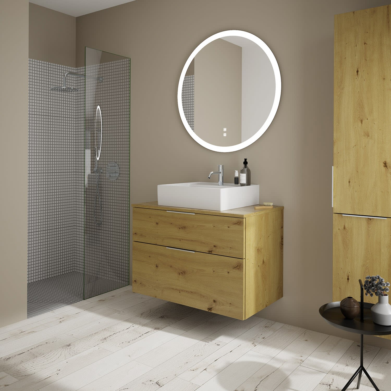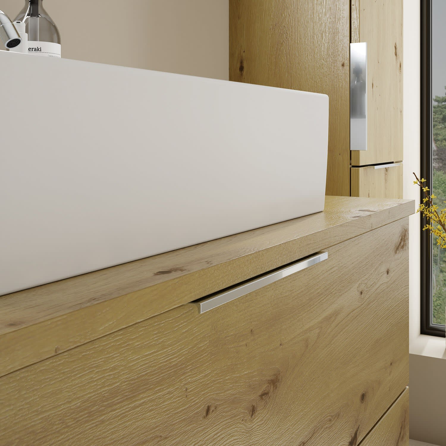 burgbad Eqio Waschtischkombination mit Keramik-Aufsatzwaschtisch 90 cm, mit Griff G0146