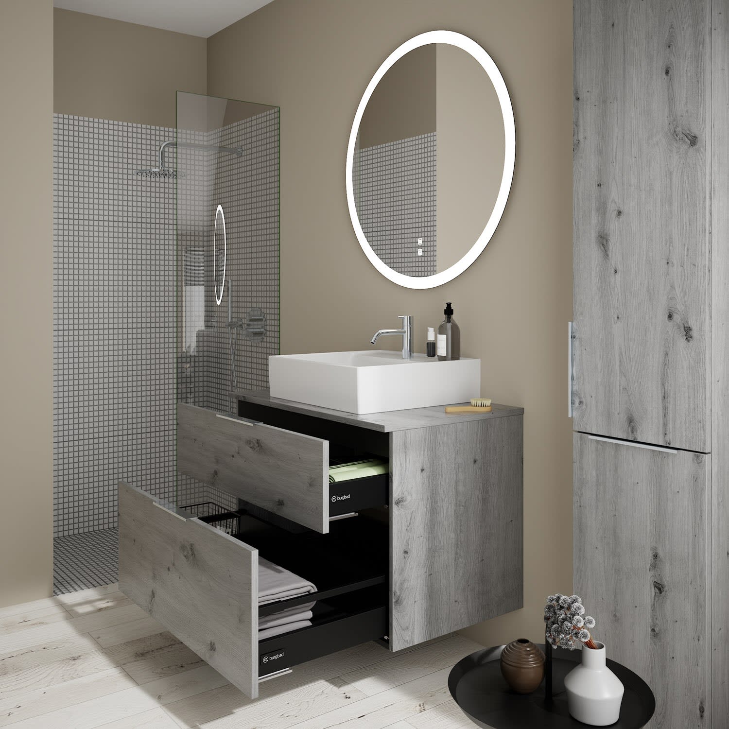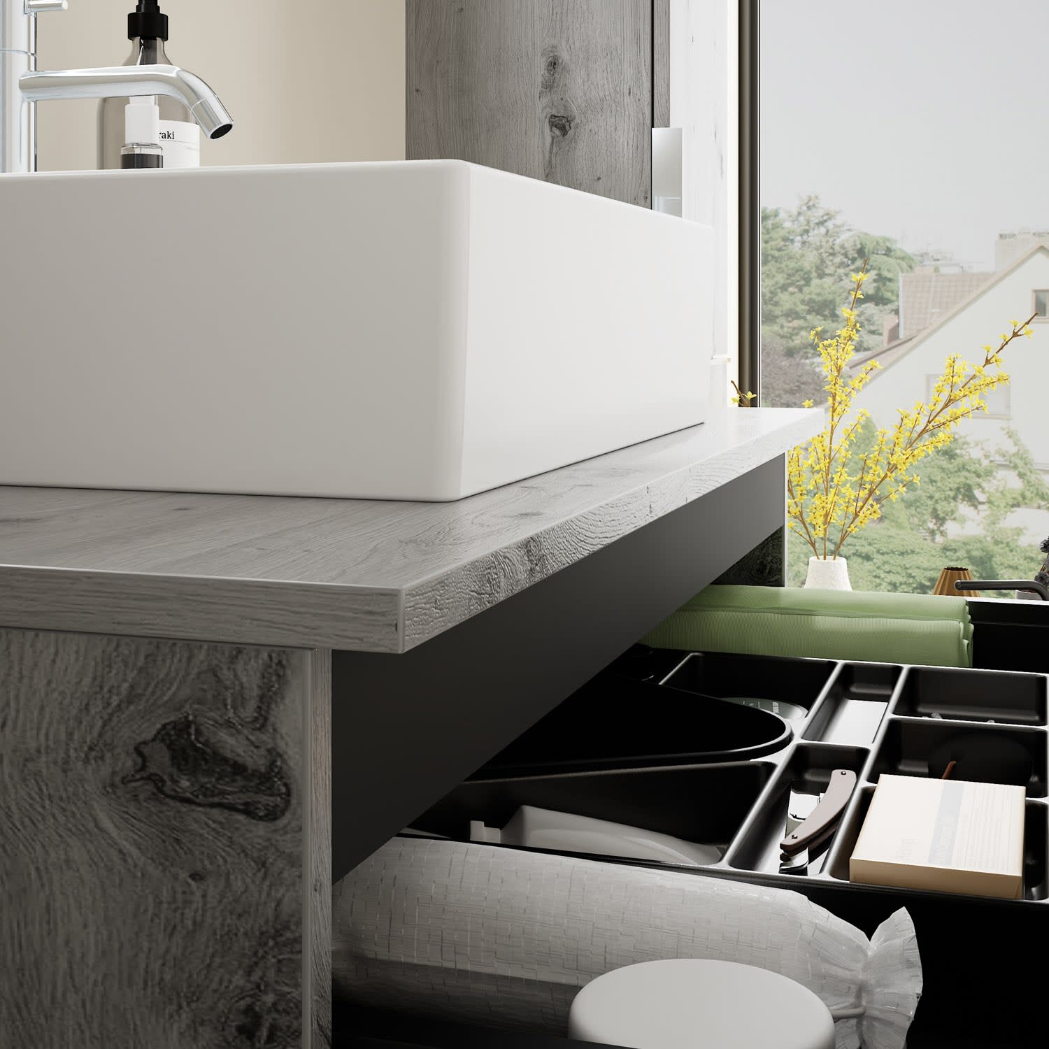 burgbad Eqio Waschtischkombination mit Keramik-Aufsatzwaschtisch 90 cm, mit Griff G0146