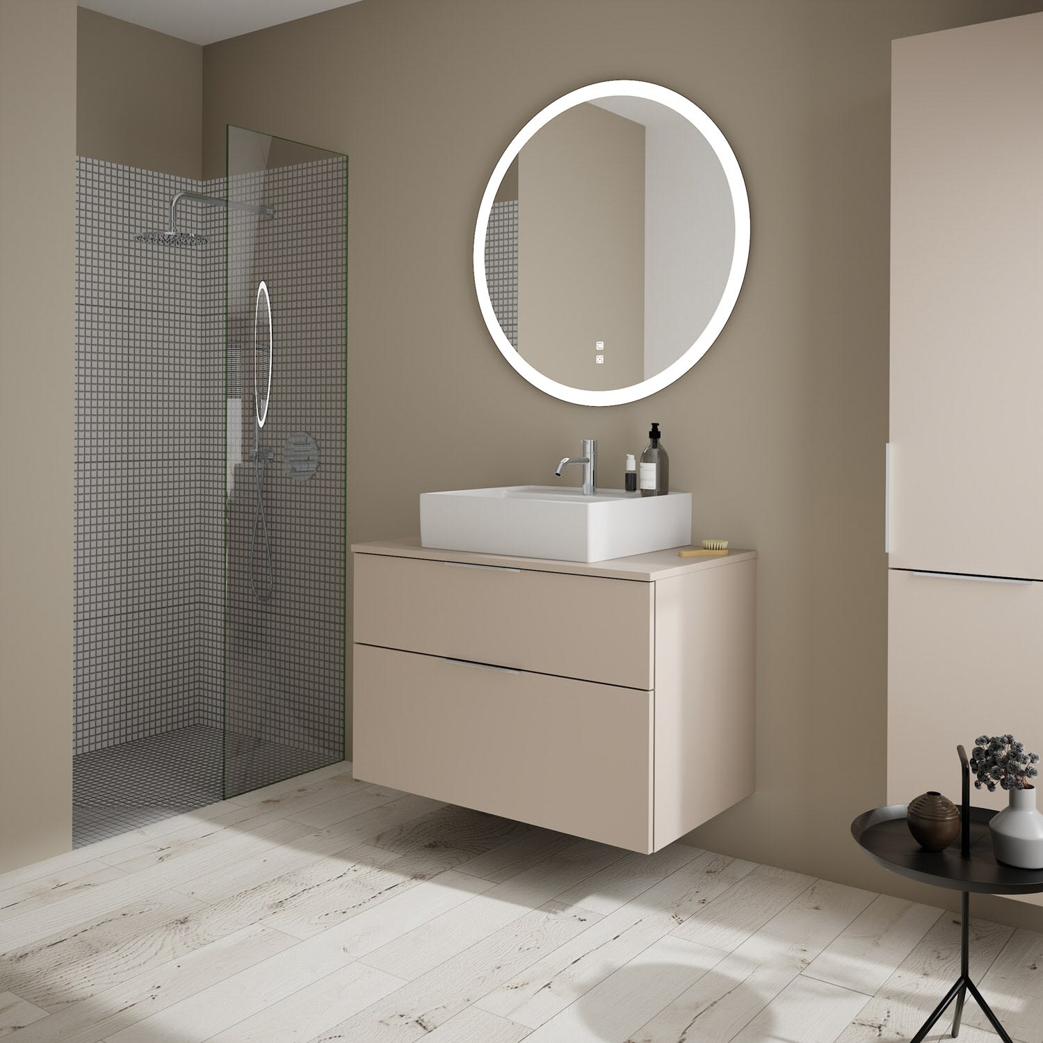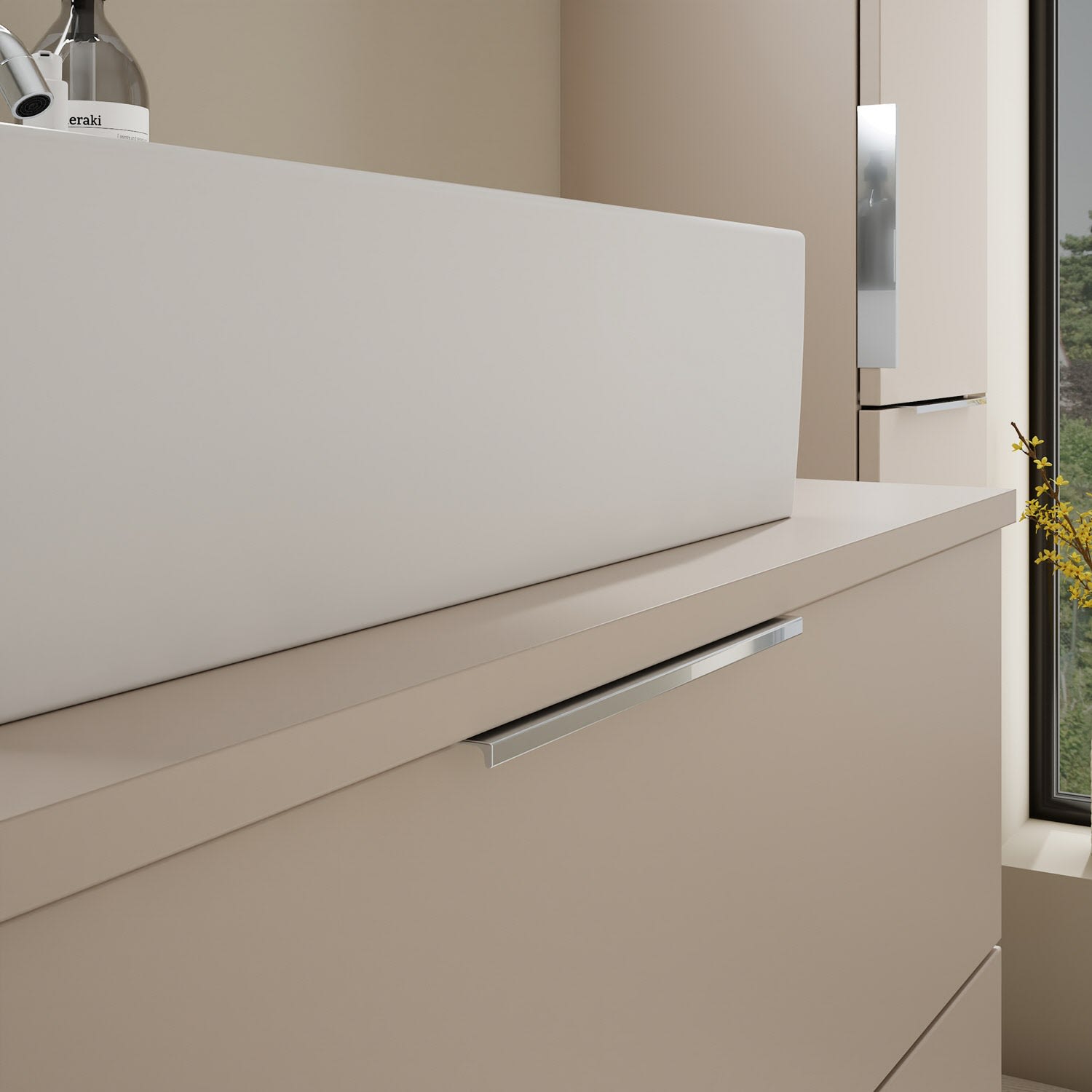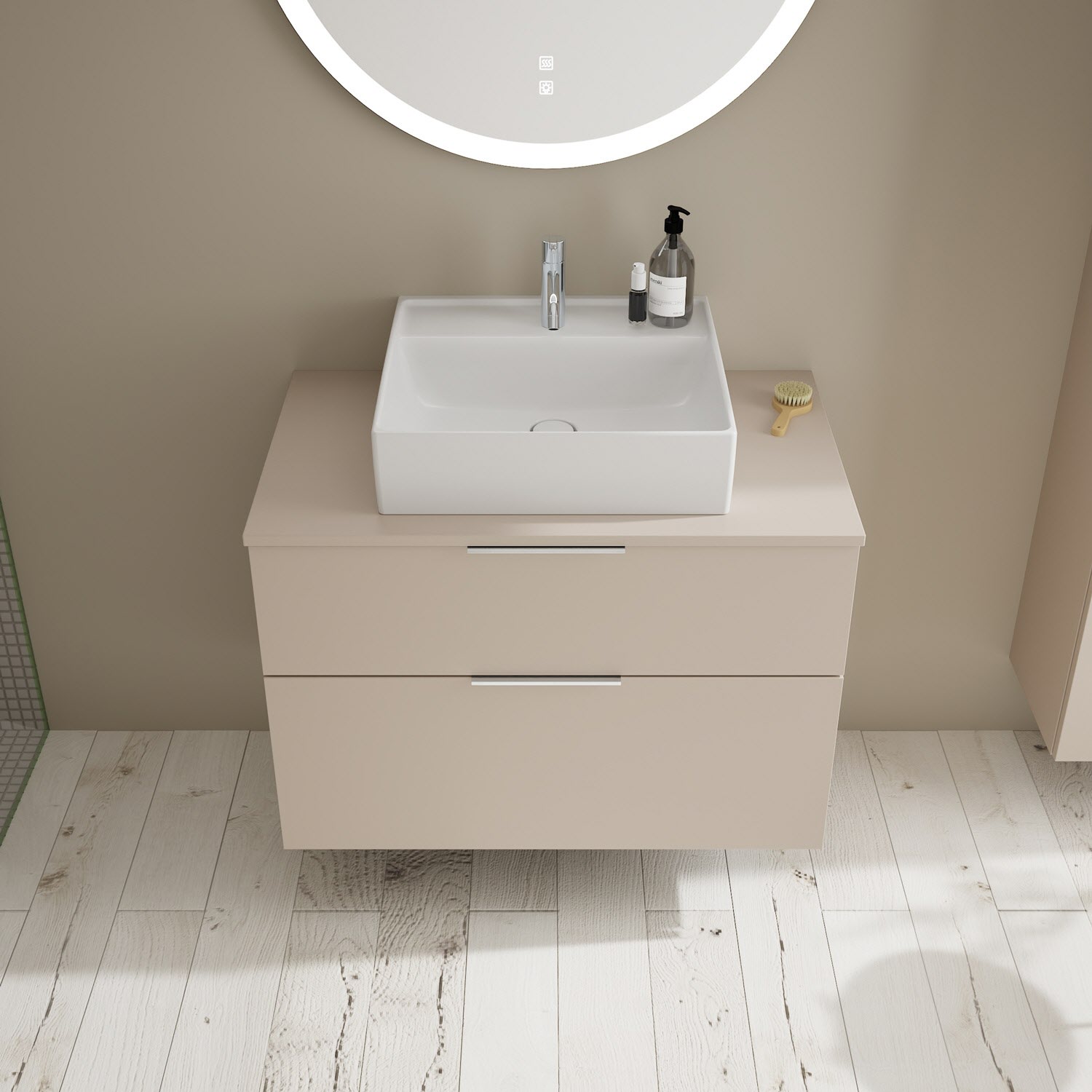 burgbad Eqio Waschtischkombination mit Keramik-Aufsatzwaschtisch 90 cm, mit Griff G0146