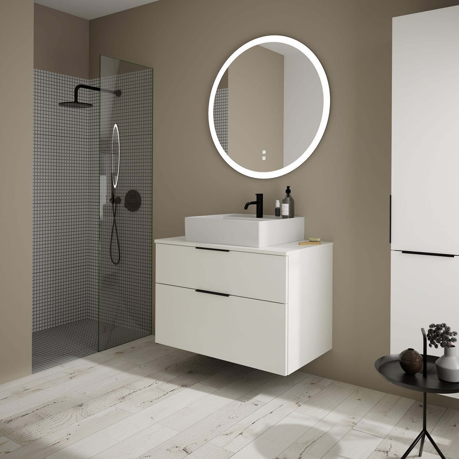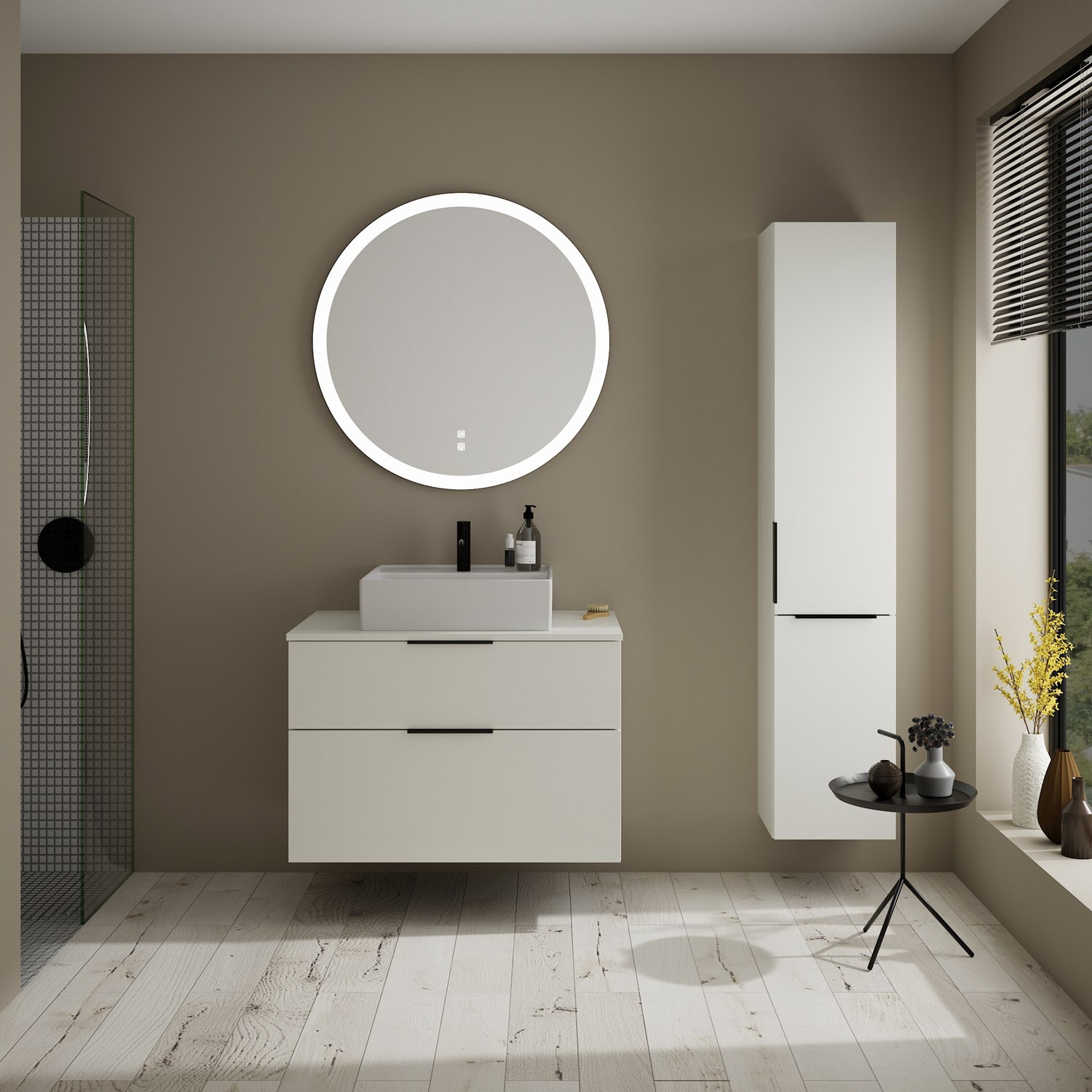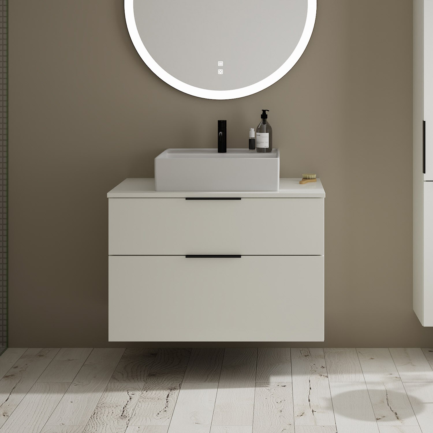 burgbad Eqio Waschtischkombination mit Keramik-Aufsatzwaschtisch 90 cm, mit Griff G0200