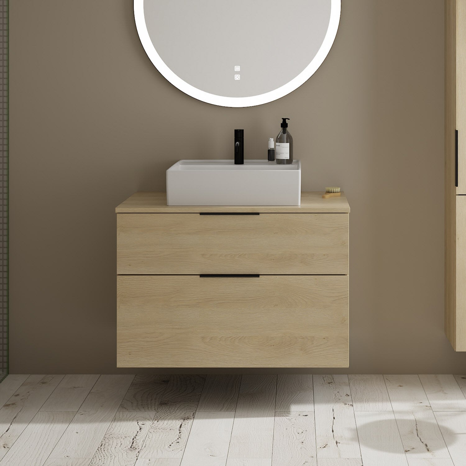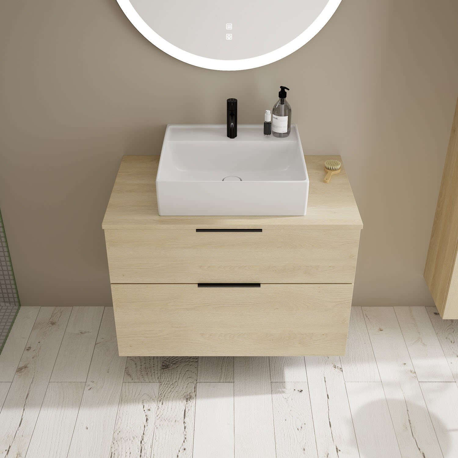 burgbad Eqio Waschtischkombination mit Keramik-Aufsatzwaschtisch 90 cm, mit Griff G0200