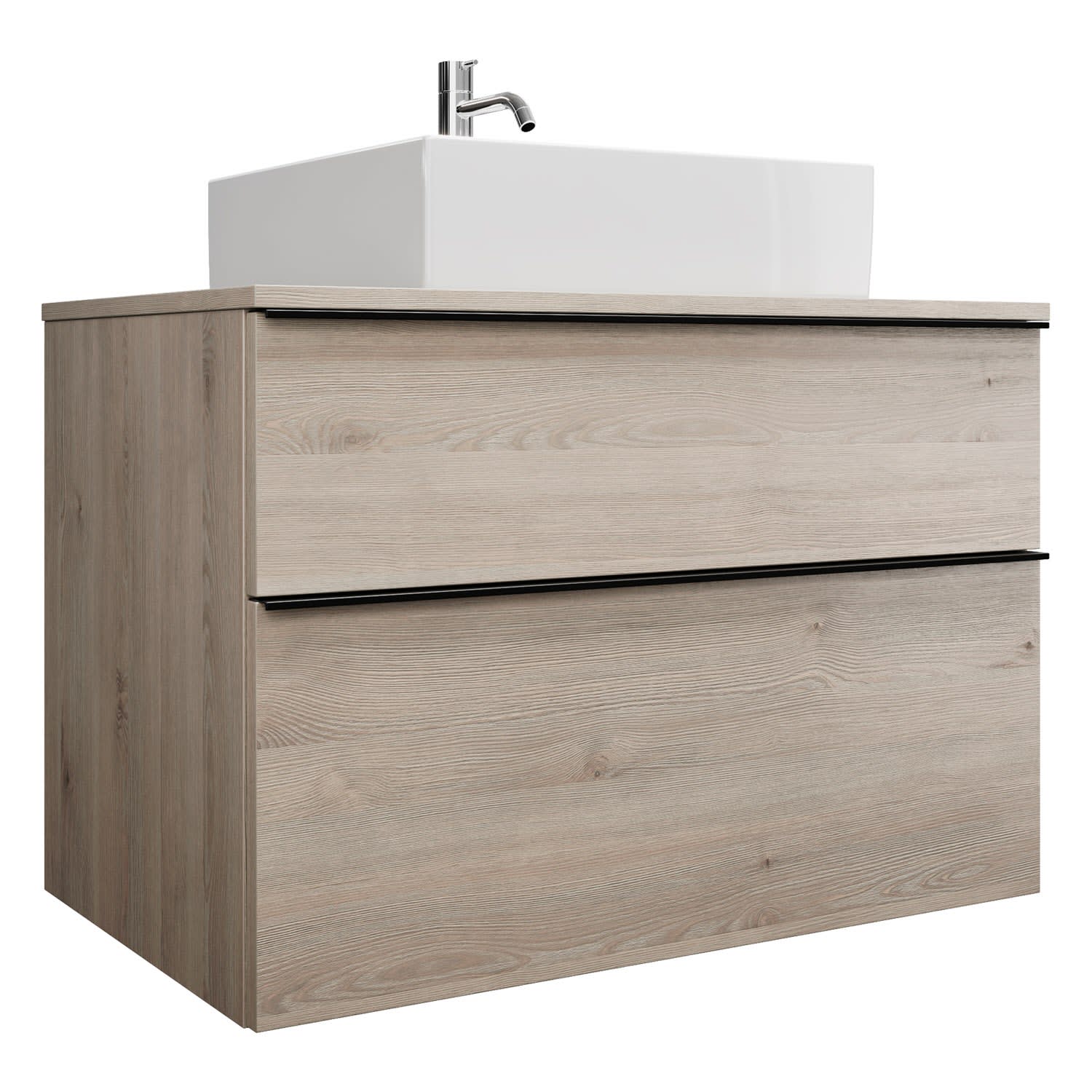 burgbad Eqio Waschtischkombination mit Keramik-Aufsatzwaschtisch 90 cm, mit Griffleiste G0252