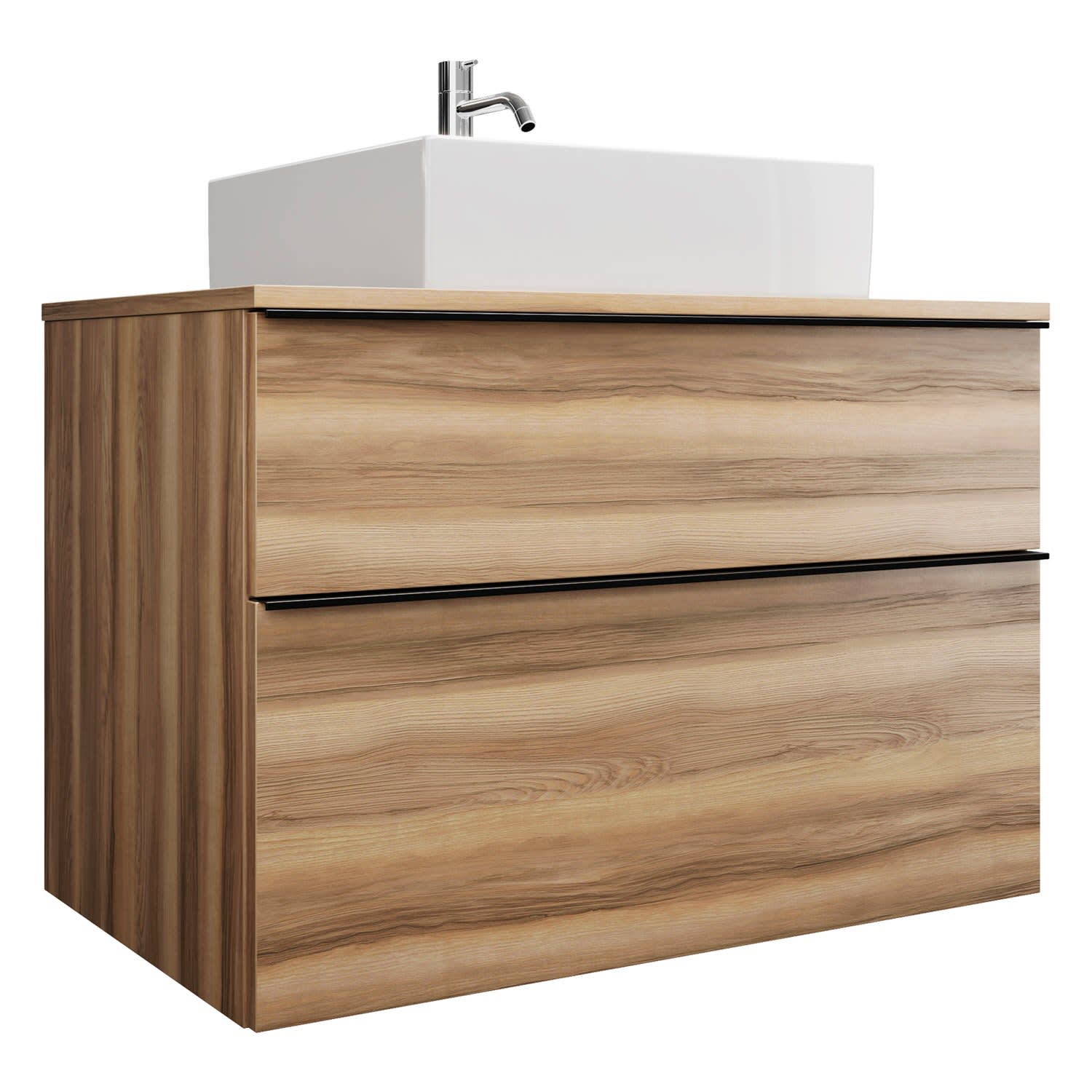 burgbad Eqio Waschtischkombination mit Keramik-Aufsatzwaschtisch 90 cm, mit Griffleiste G0252