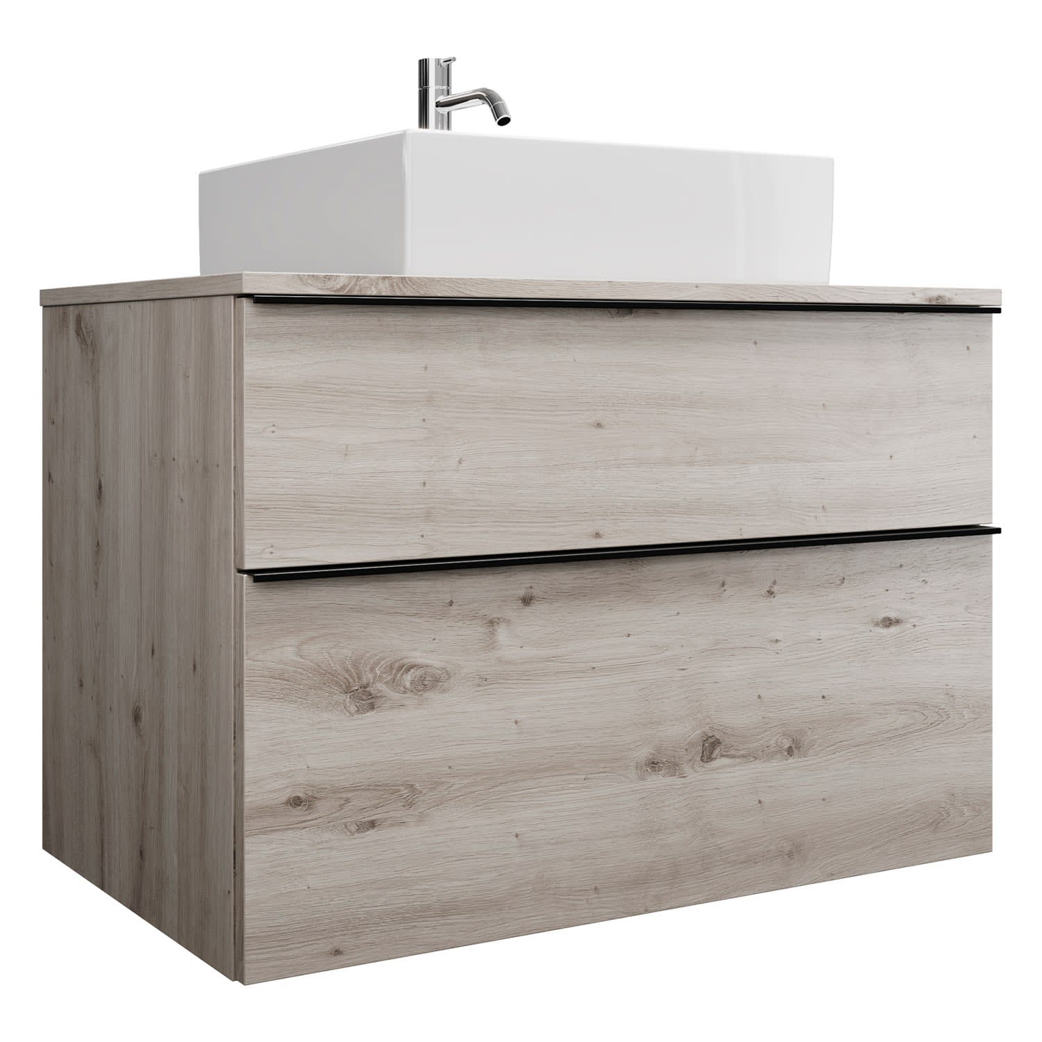 burgbad Eqio Waschtischkombination mit Keramik-Aufsatzwaschtisch 90 cm, mit Griffleiste G0252