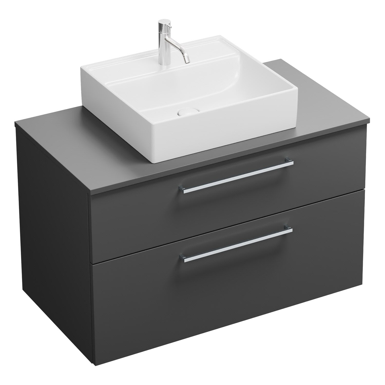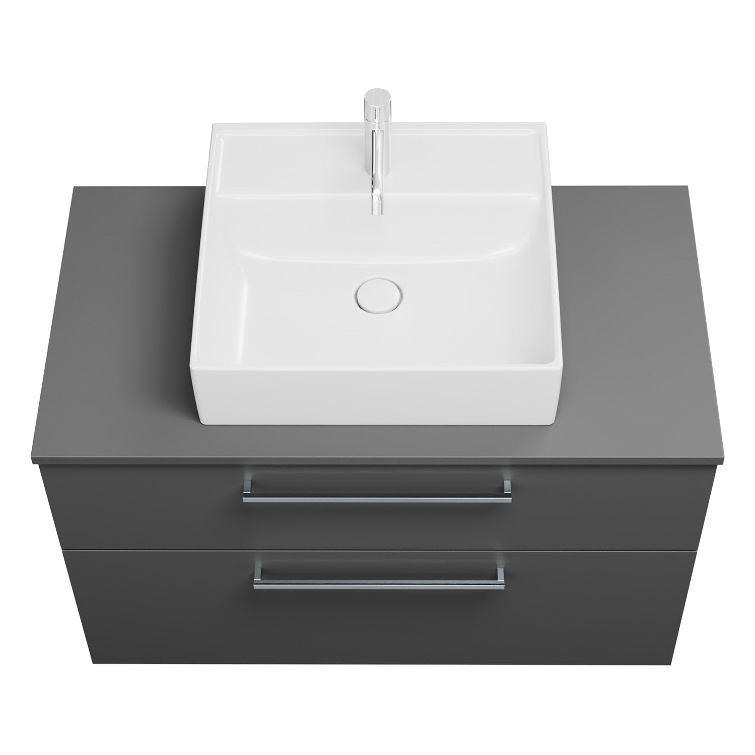 burgbad Eqio Waschtischkombination mit Keramik-Aufsatzwaschtisch 100 cm, mit Stangengriff P95