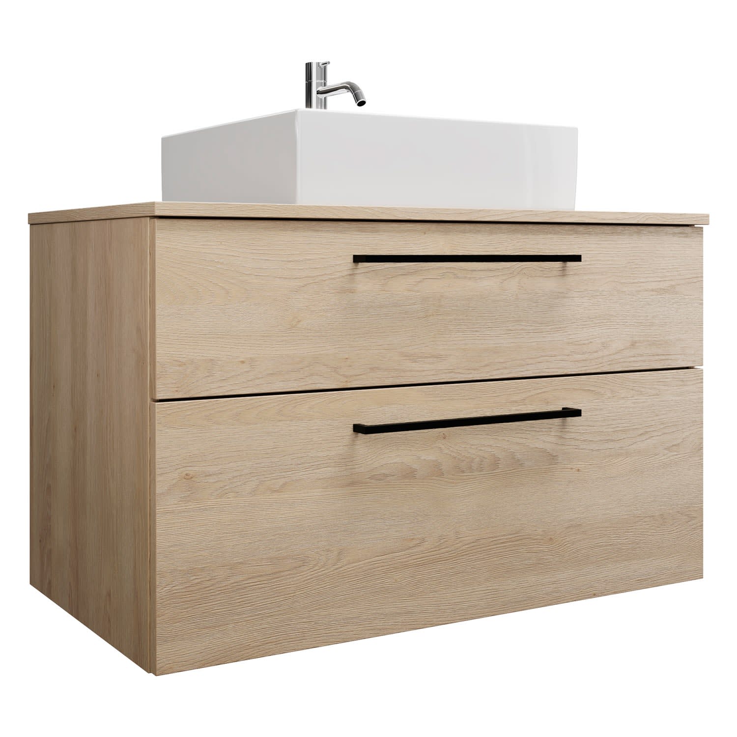 burgbad Eqio Waschtischkombination mit Keramik-Aufsatzwaschtisch 100 cm, mit Stangengriff G0234