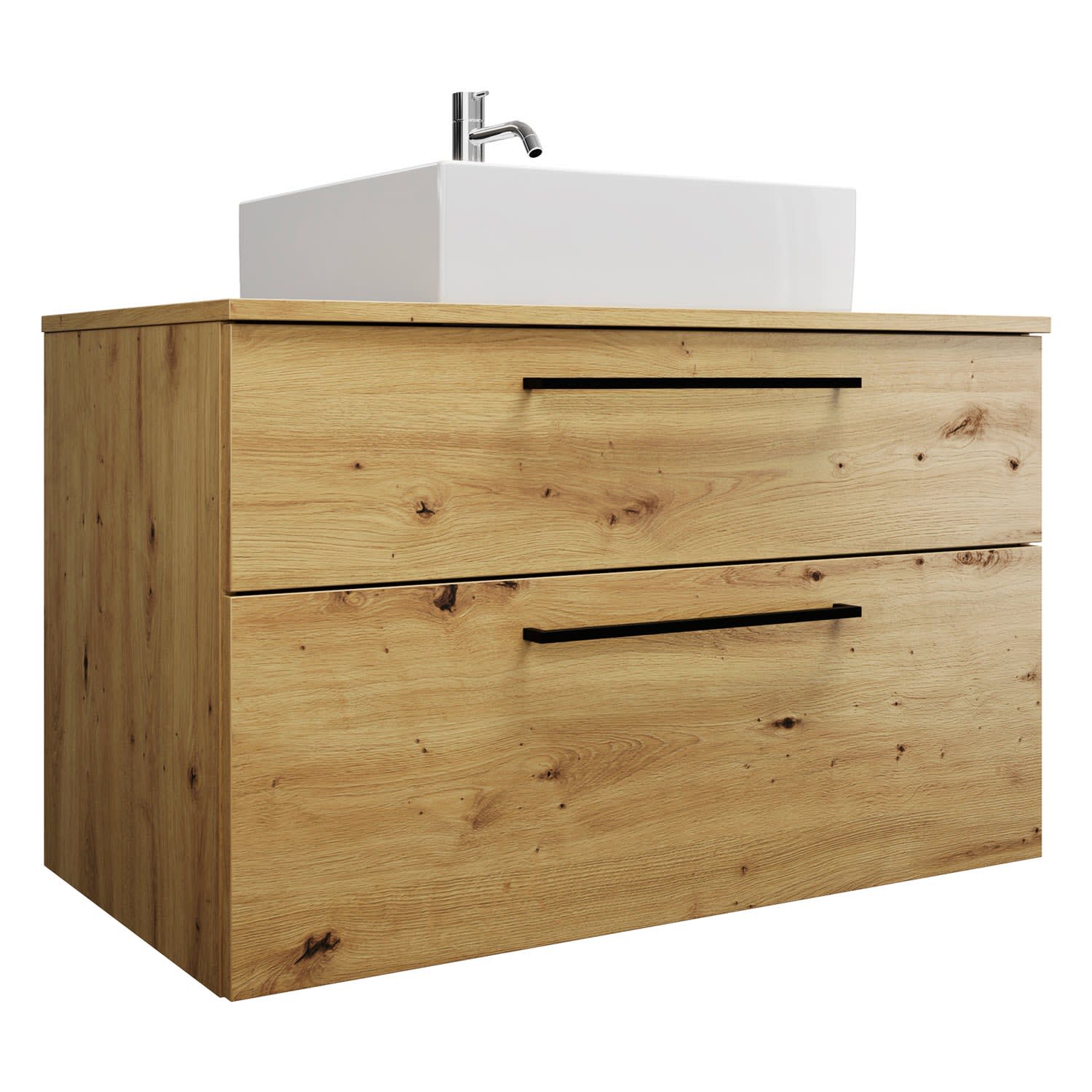 burgbad Eqio Waschtischkombination mit Keramik-Aufsatzwaschtisch 100 cm, mit Stangengriff G0234