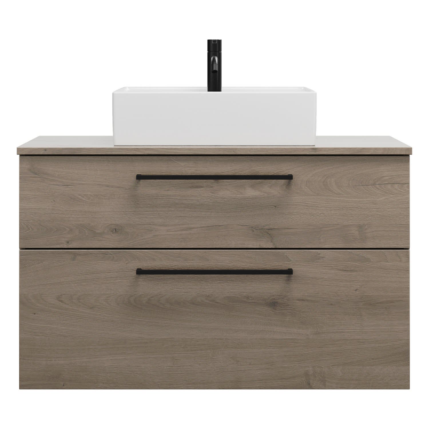 burgbad Eqio Waschtischkombination mit Keramik-Aufsatzwaschtisch 100 cm, mit Stangengriff G0234