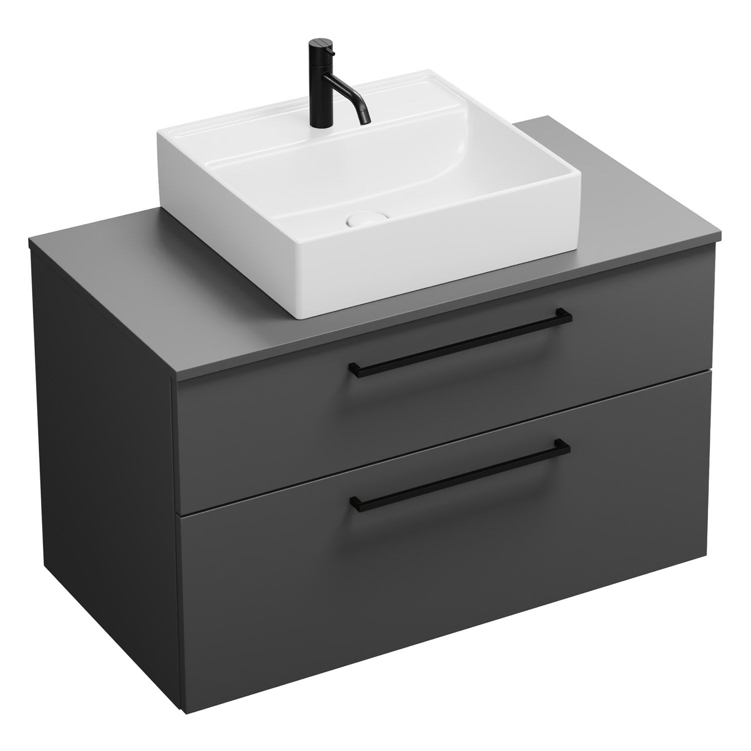 burgbad Eqio Waschtischkombination mit Keramik-Aufsatzwaschtisch 100 cm, mit Stangengriff G0234