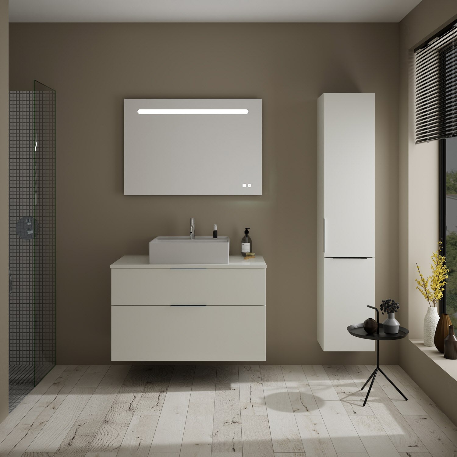 burgbad Eqio Waschtischkombination mit Keramik-Aufsatzwaschtisch 100 cm, mit Griff G0146